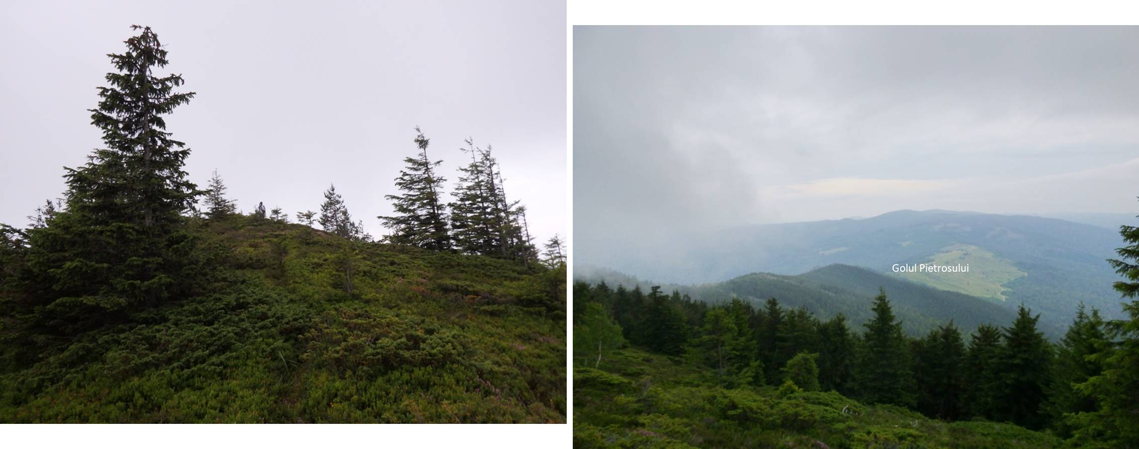 Revenim pe culmea acoperită de un molidiș relativ tânăr, …