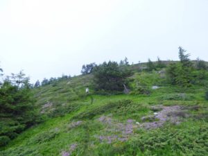 După ce depășim Păișeaua Arsă și atingem culmea în zona unui ultim fost parchet, ni se arată – încă departe – Pietrosul !