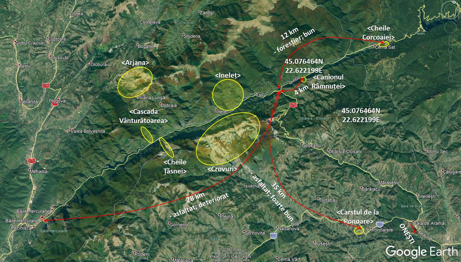 Lăm act de ceea ce mai e pe Cerna în amonte, mai mult, … promițându-ne o traversare din valea Cernei în în cea a Jiului – poate vom apuca asfaltarea drumului; acum însă, … pe Cerna, la vale !