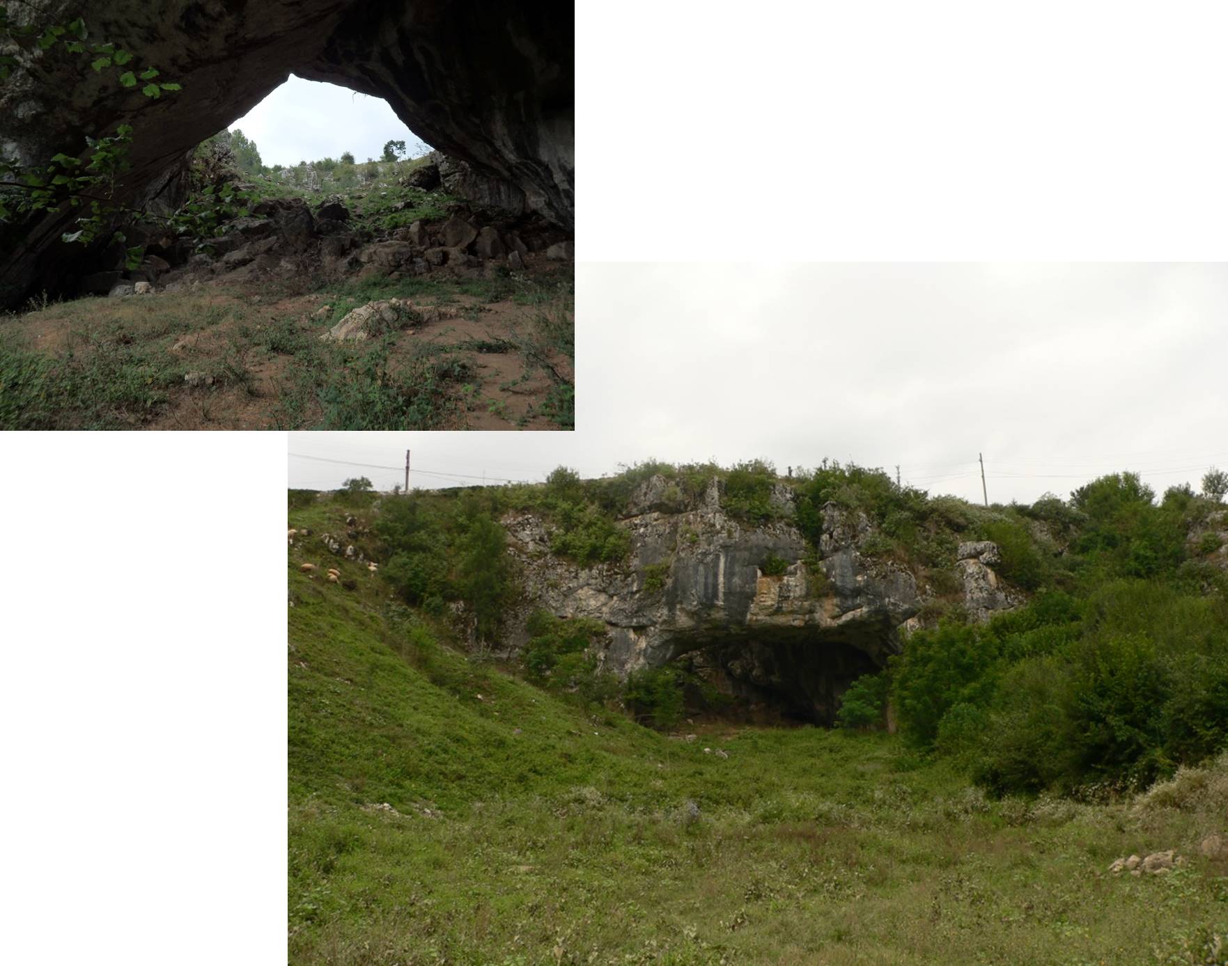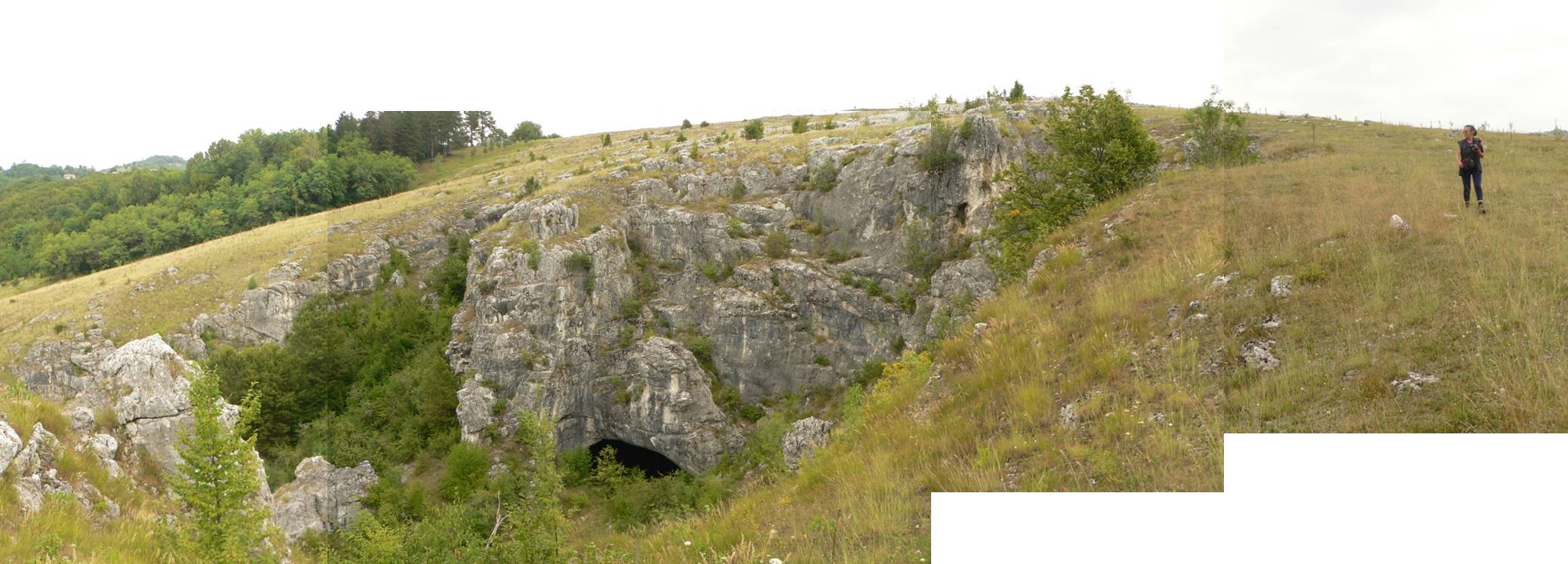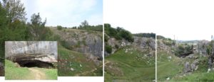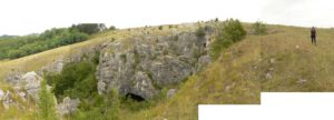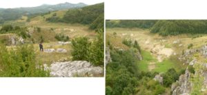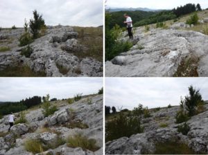 La baza câmpului de lapiezuri … dibuim și intrarea a doua a Peșterii de sub Pod …