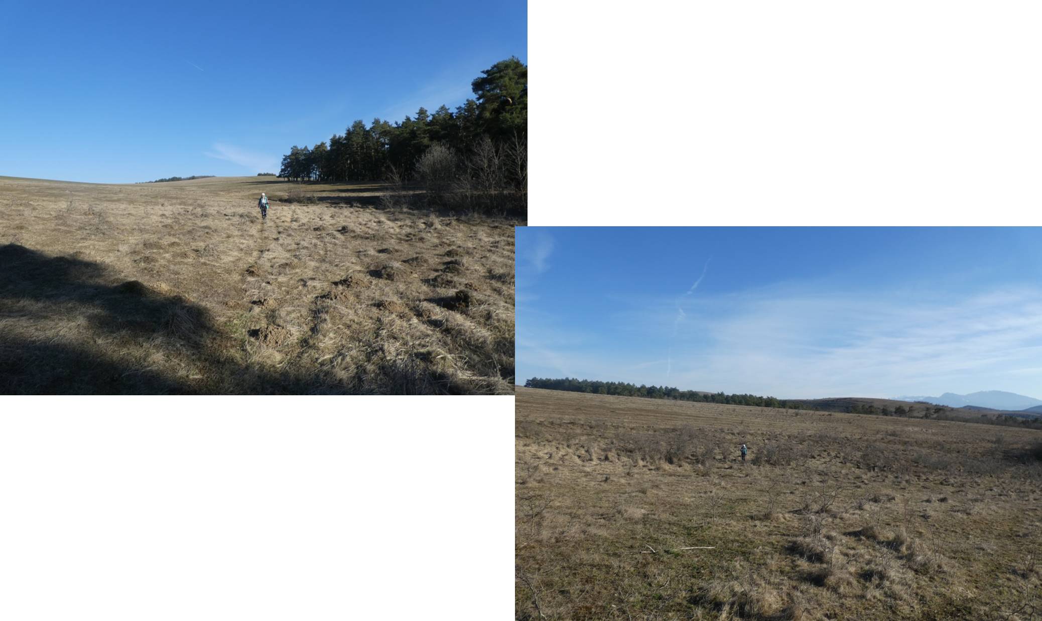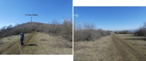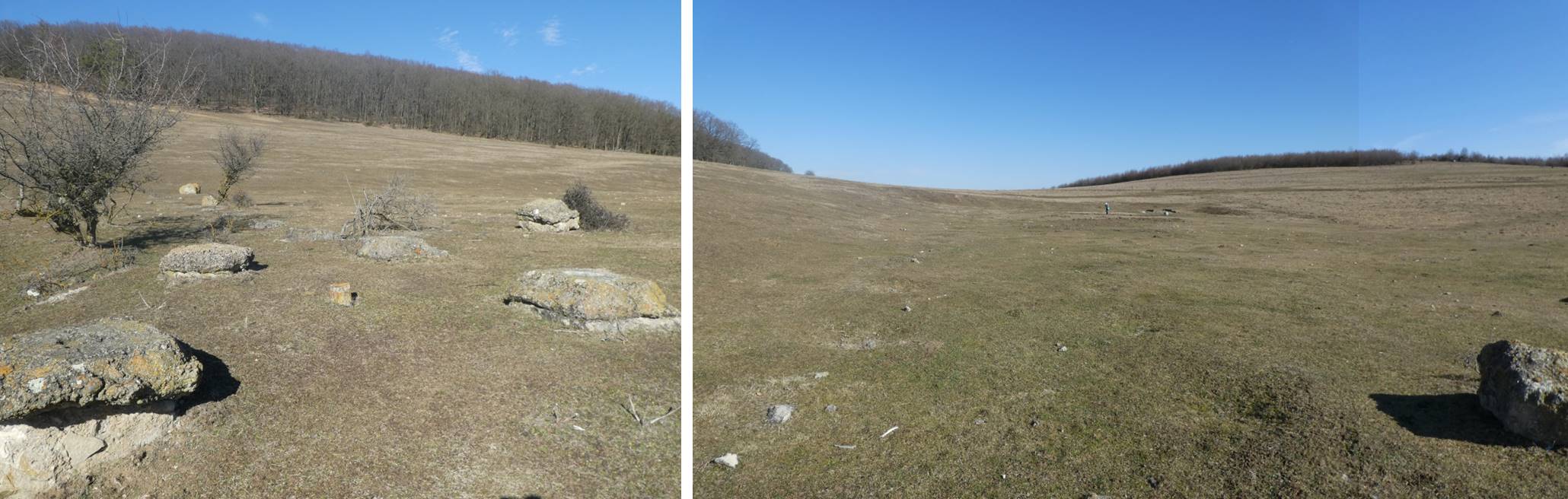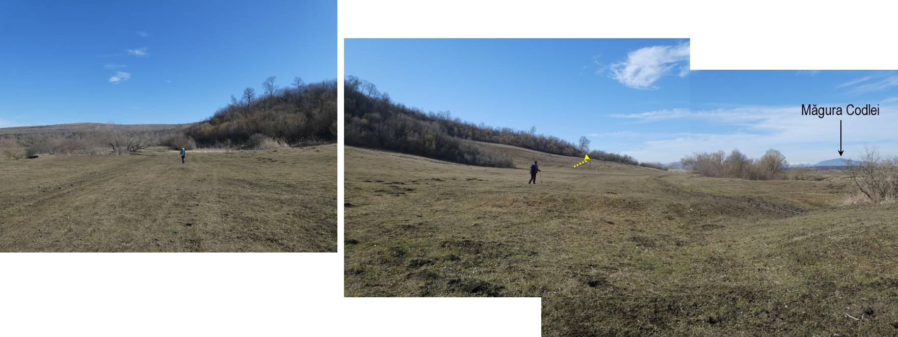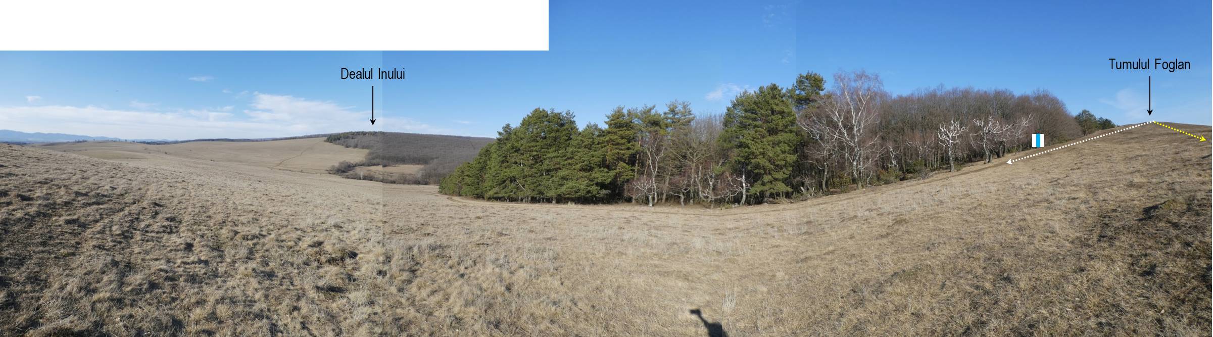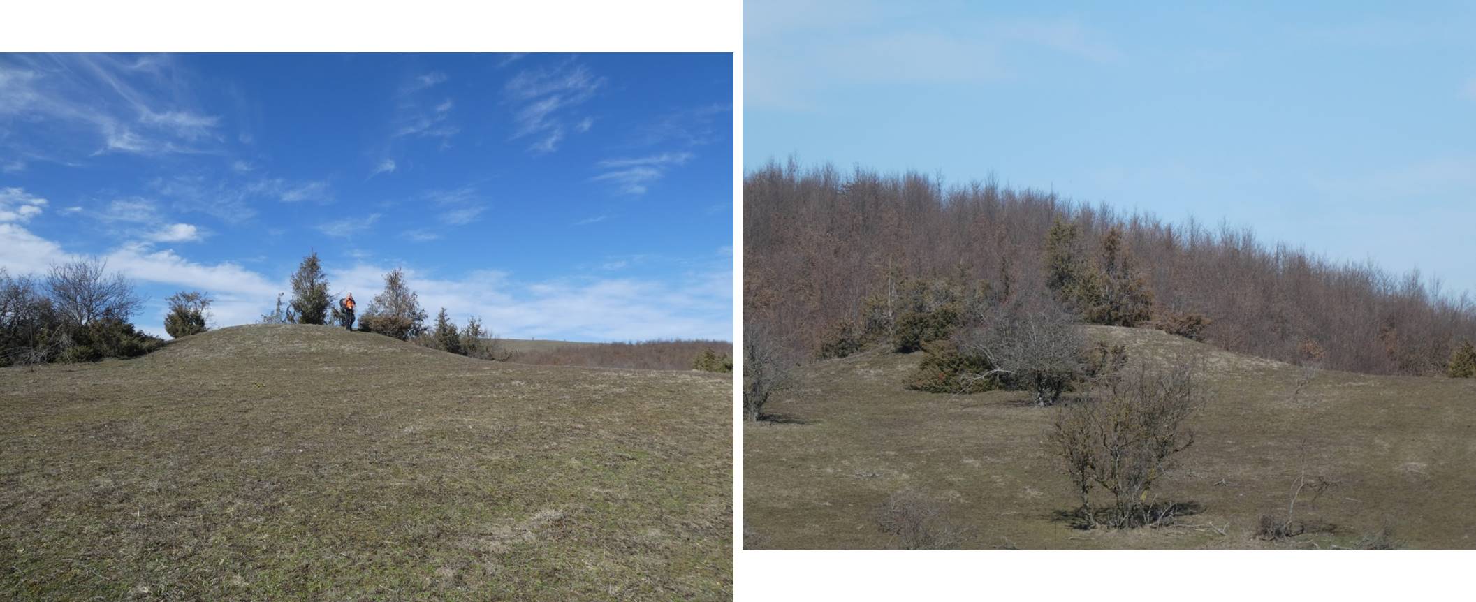 … se află câte un tumul; iar în șaua dintrei ei, o certă groapă antropică (poate rezervor de apă pluvială) !