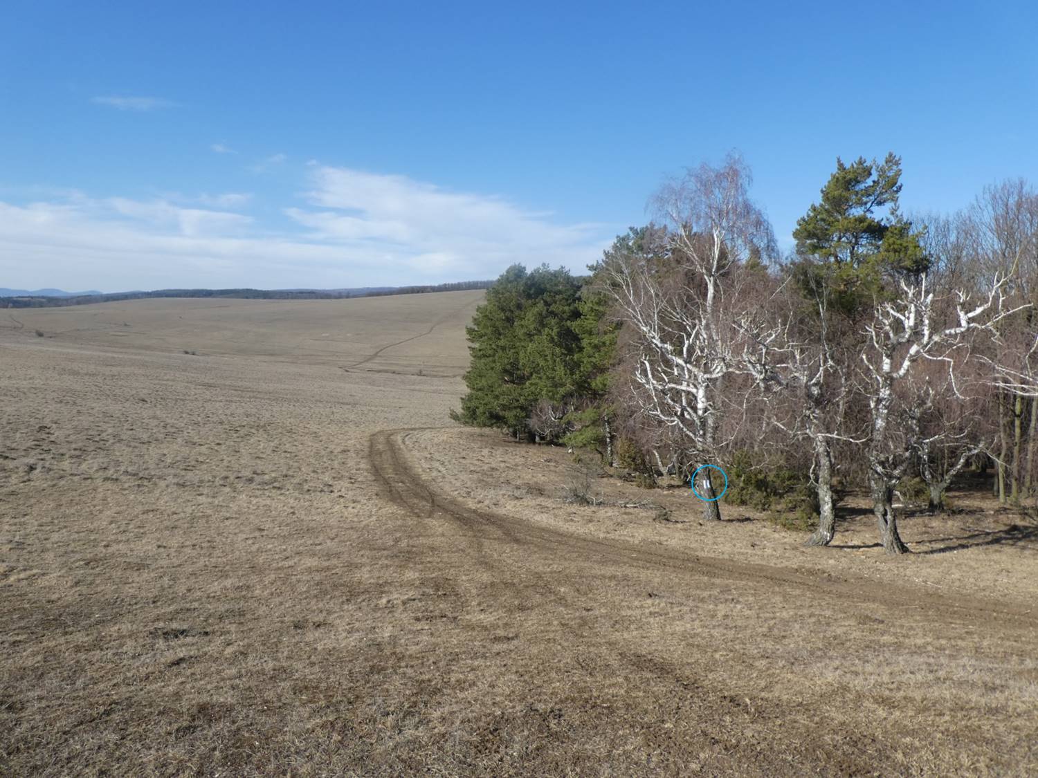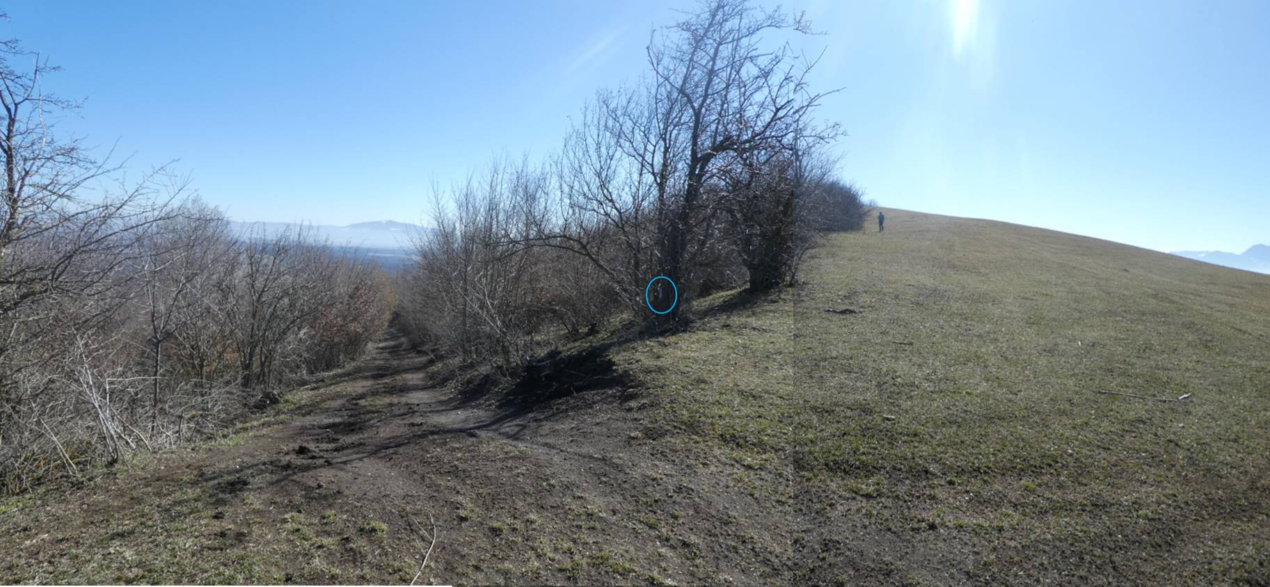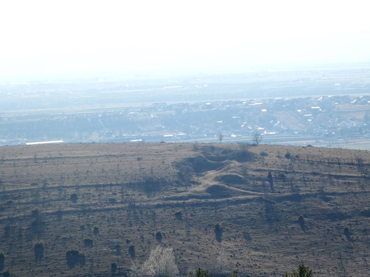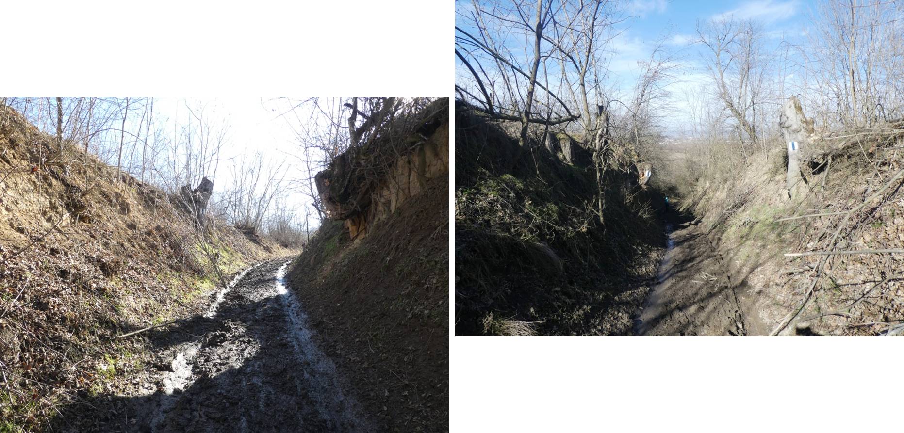 … se află câte un tumul; iar în șaua dintrei ei, o certă groapă antropică (poate rezervor de apă pluvială) !