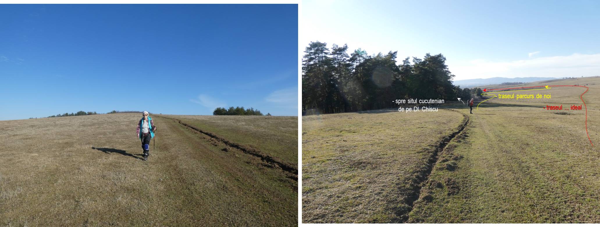 … către Dealul Chiscu. Lăsăm pentru altă dată căutarea și “vizitarea” sitului cucutenian de pe el, căci, oricum, la data parcurgerii traseului nici nu știam că există – sic !