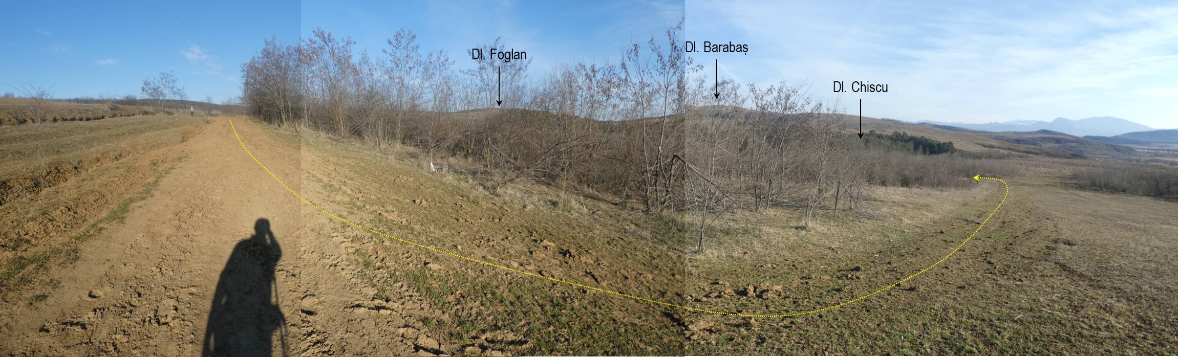 Suim puțin pieziș spre culmea Dealului Foglan; …