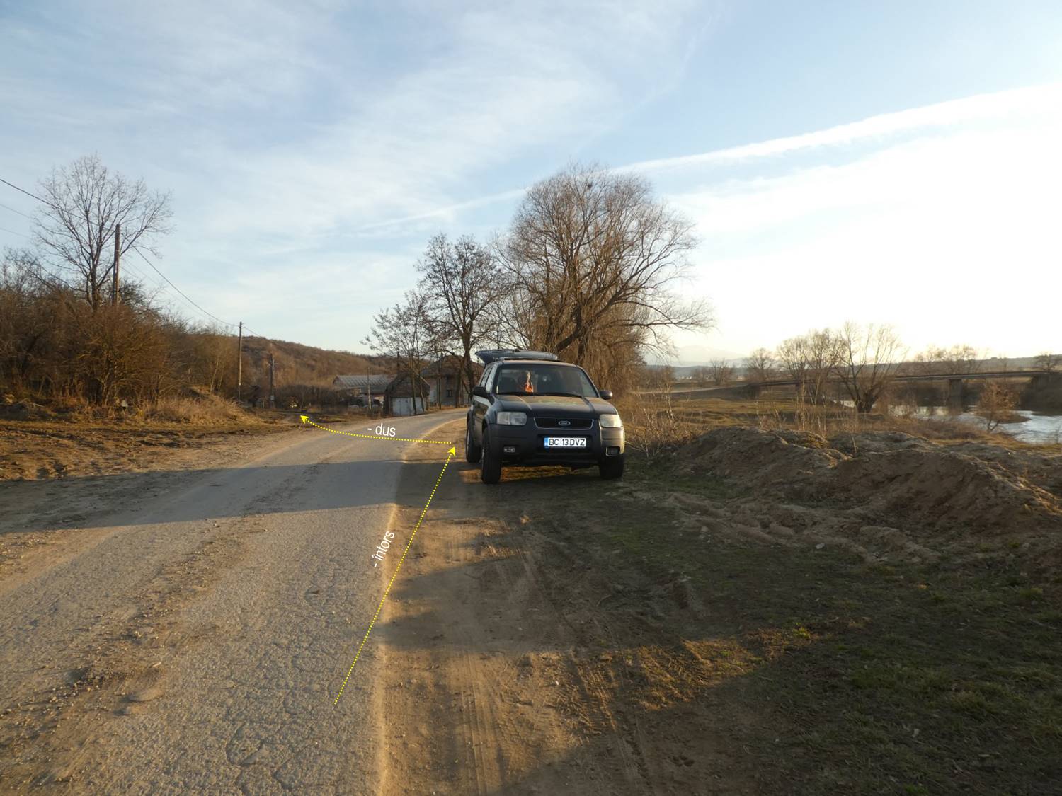 – din punctul ales ca parcare, părăsim șoseaua și continuăm spre sud pe ulița paralelă cu rîul Olt.