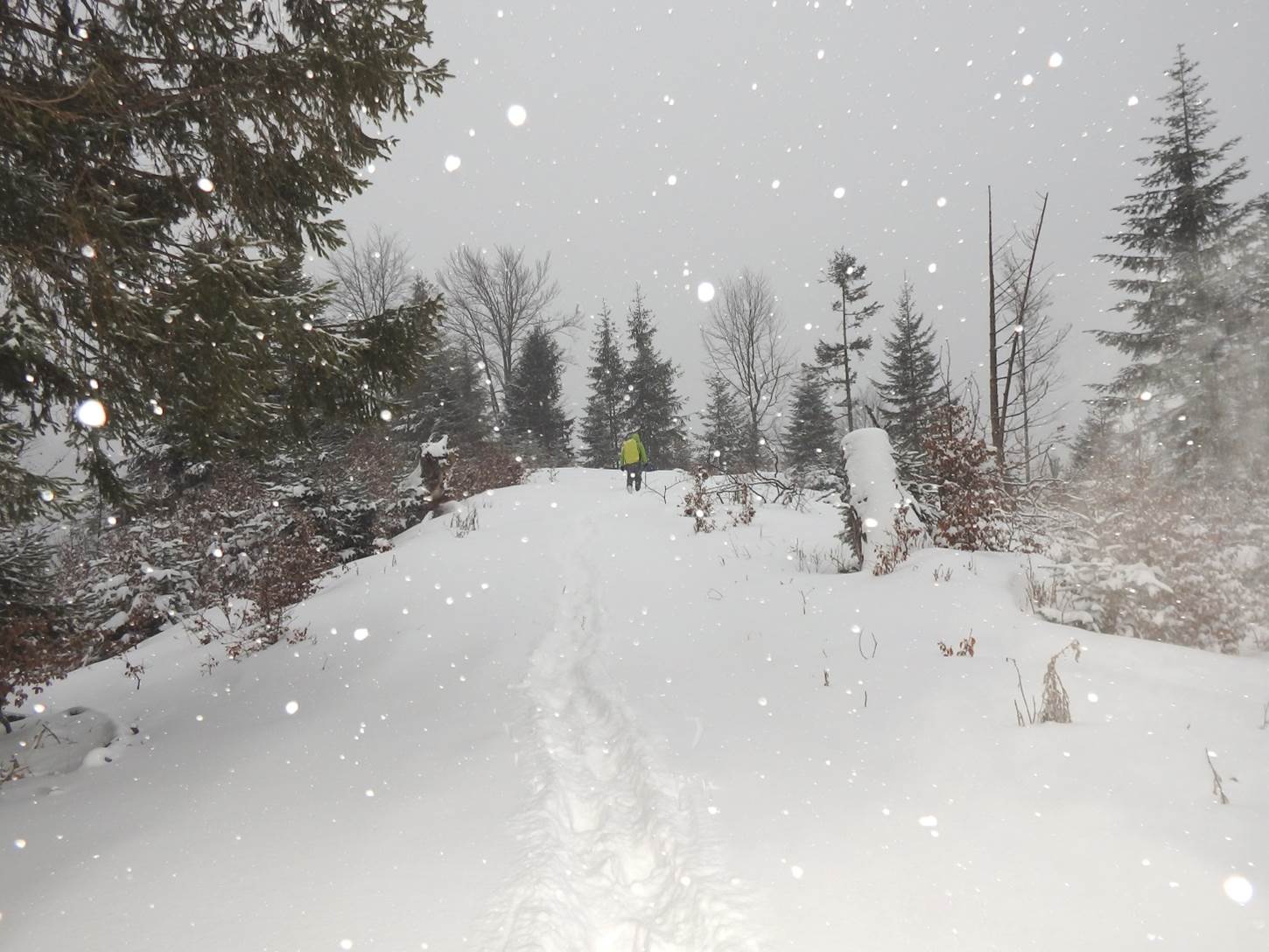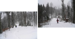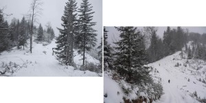 Deviem destul de repede de pe ea, pe Culmea Paloșului (părăsind, spre nord-vest, hotarul silvic marcat cu “H”-uri, din dreptul bornei V 164) !