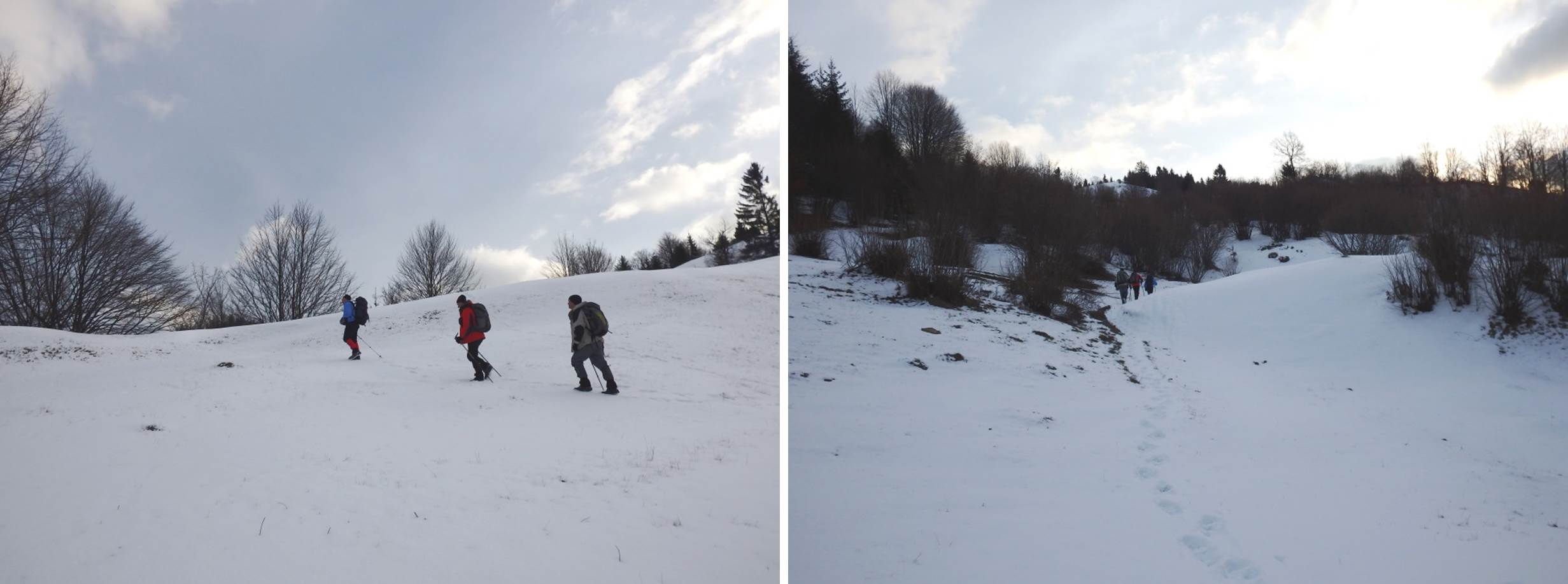 Sentimentul acesta l-am avut și noi când, la prima oră a zilei, mergând prin satul cam pustiu, am întâlnit o sanie trasă de un cal, ce suia pe valea Camencăi. S-a tot dus, dispărând dincolo de ultima casă a satului și lăsând în urmă un firav clinchet de clopoței (parcă) ! Apucaserăm, totuși, să schimbăm două vorbe cu omul din sanie, după ce a oprit în dreptul nostru cu un “ptrrru” prelung, adresat calului: “Ieri, pe la amiaz’, în fundul Șugurei, un urs a răcnit la un fin al meu.” …