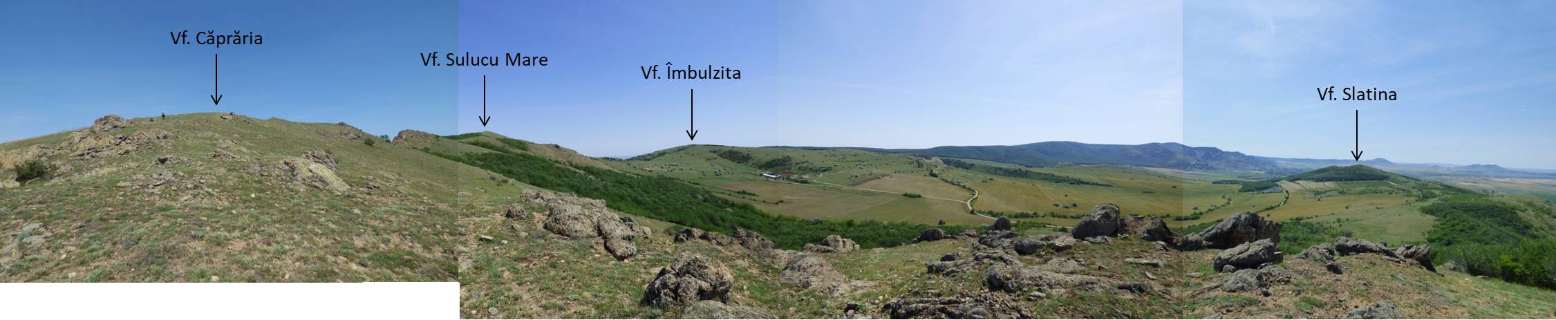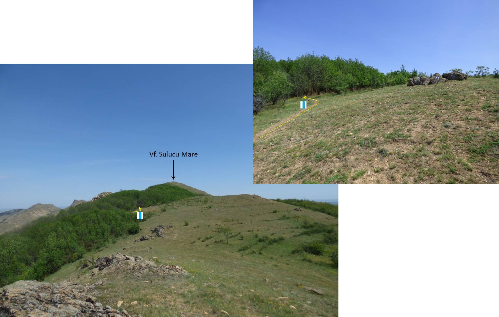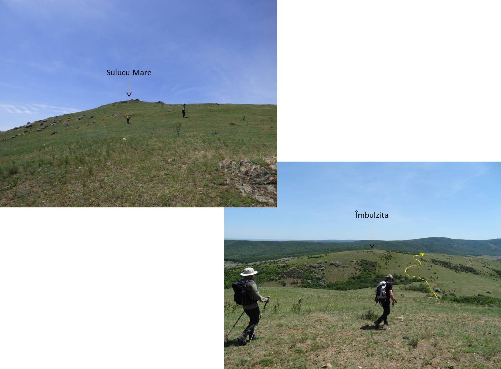 Odată îndeplinită și această formalitate – turul de orizont de pe Sulucul Mare, vârful cel mai înalt al Culmii Pricopanului – ne dăm drumul la vale spre șaua adâncă, largă, ce ne desparte de “sectorul Țuțuiatu” al Munților Măcin; …