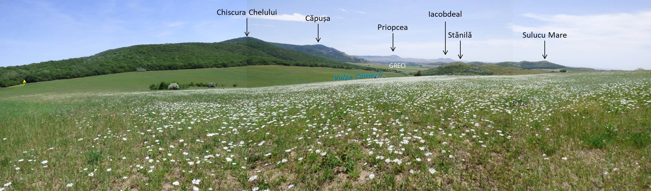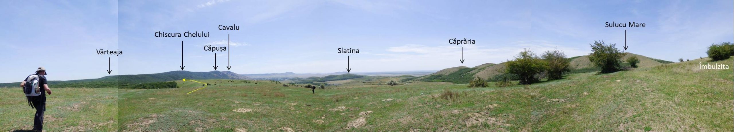 Avem însă în vedere și celălalt scop: traseul per pedes; așa că luăm în colimator câteva dintre repere: Dealul Greci, Ortan Tepe, … și ultimul de pe listă, Cavalu !