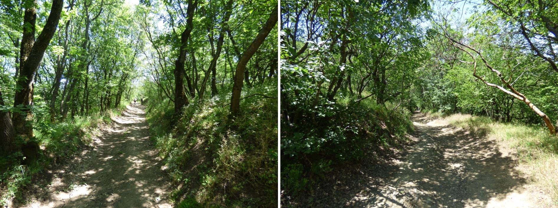 Drumul de culme pe care am intrat în pădure se arcuiește ușor spre dreapta pentru a se instala pe culmea interfluviului dintre valea Jijilei și cea a Comorii, totodată, suind, cel mai adesea, cvasiimperceptibil !