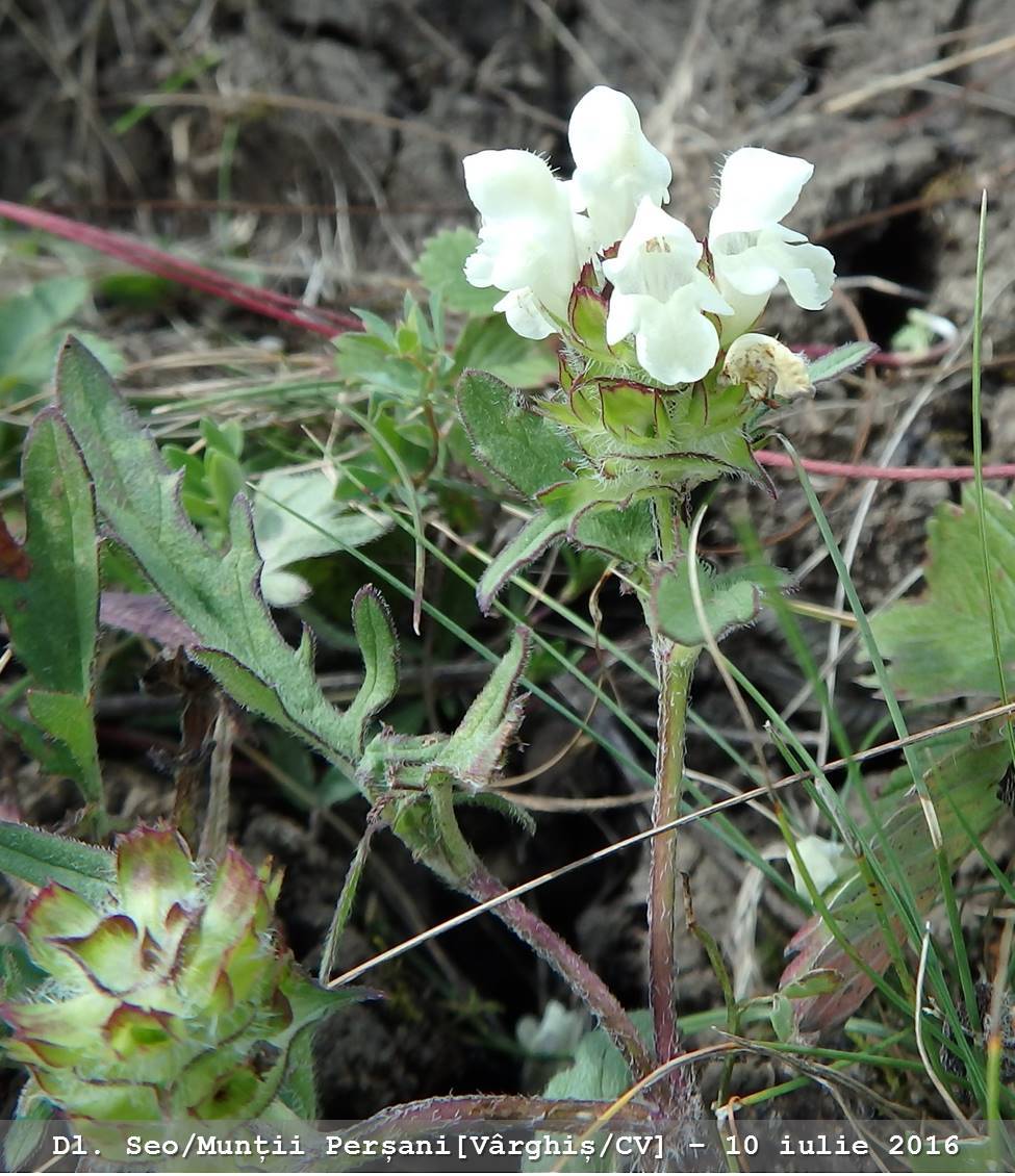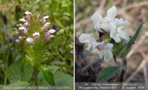 | – lobul superior al caliciului cu trei dinți foarte scurți, mucronați, aproape obtuzi, iar cel inferior bisectat până la jumătate | – lobul superior al caliciului cu trei dinți scurți, dar distincți – cel mijlociu puțin mai scurt -, mucronați, aproape triunghiulari, iar cel inferior bisectat pe 1/3 din lungime |