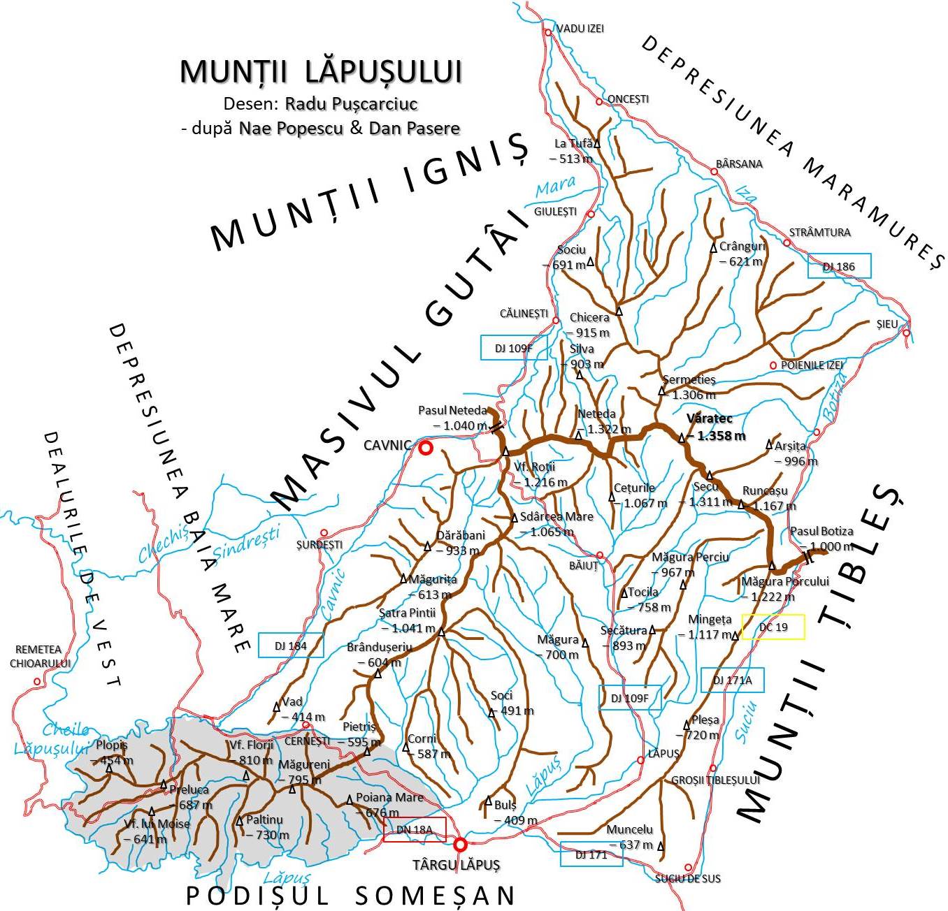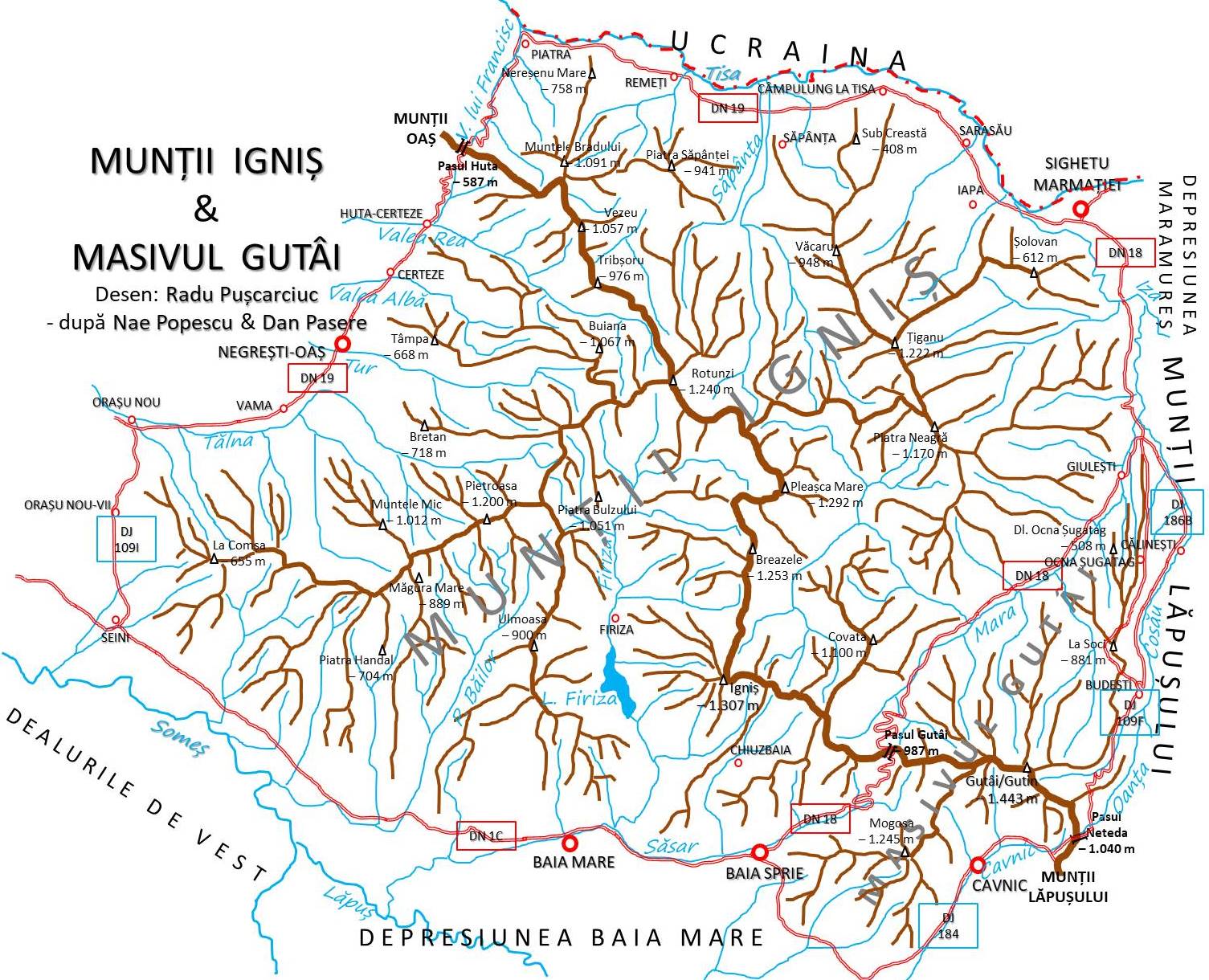 Munții Igniș & Masivul Gutâi – deși nu există motive imperative de a trata separat ele două unități montane, respectăm punctul de vedere adoptat de Posea et alii, unul consacrat și în literatura turistică – cadru în care ne și aflăm, de altfel !
