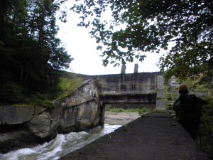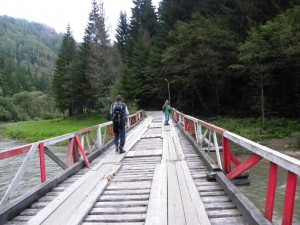 Dincolo de cabană traversăm ultimul sfert din Bistriţa pe o … brână artificială !