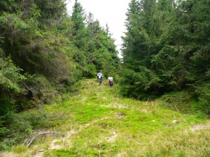 Depăşim, pe versant, Curmătura Prislopului, oricum nu foarte înaltă, prin pădure …