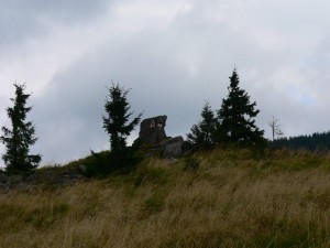 … ocolind un stei ce poartă şi marcajul traseului nostru (triunghi roşu, vizibil însă doar din sens invers !)