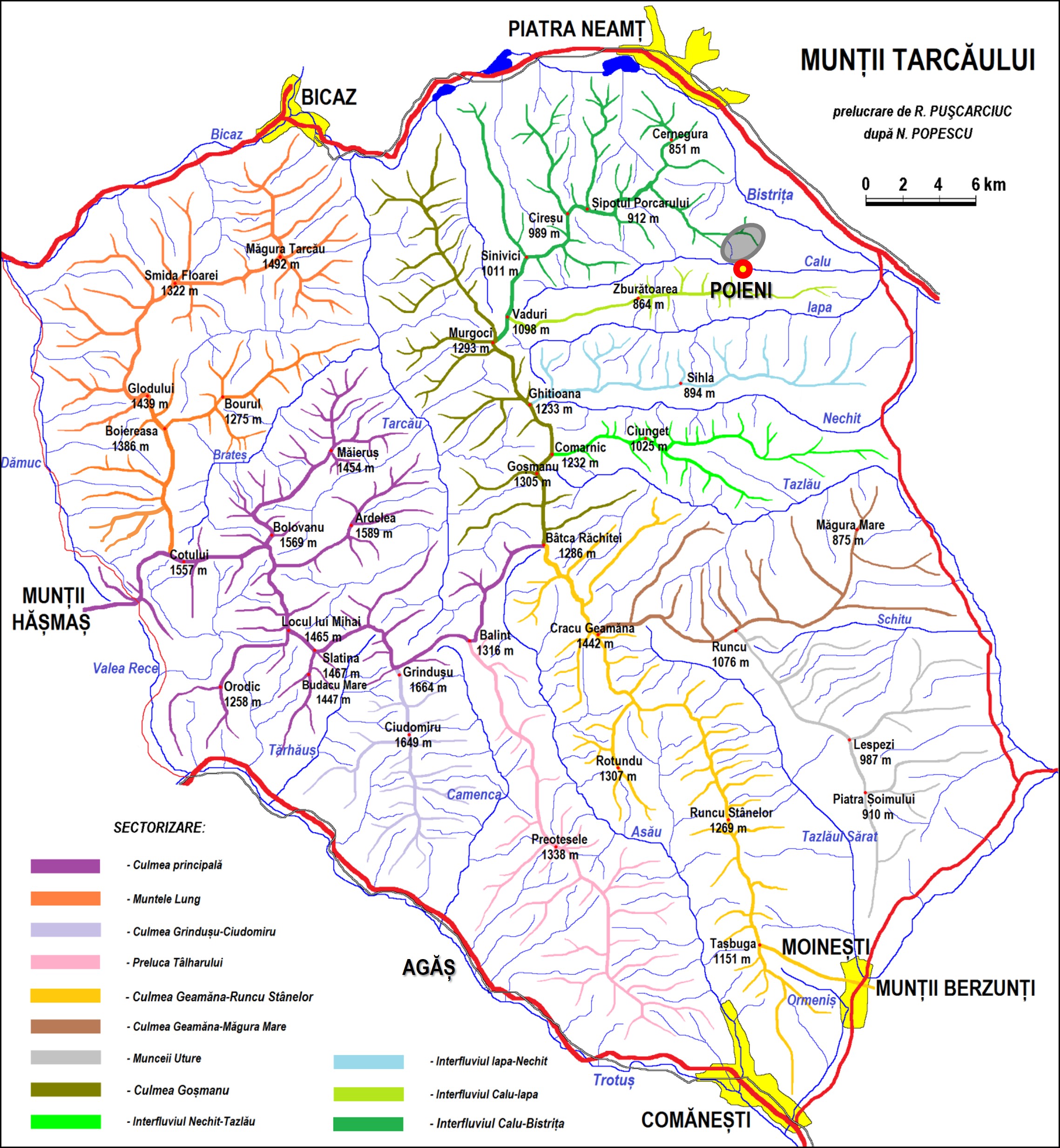 Traseu: Poieni – Dl. Piatra Șoimului – Valea Strachinei – Poiana Covrig – Curmătura Bourului – Dl. Gorganu – Valea Albișenilor – Poieni