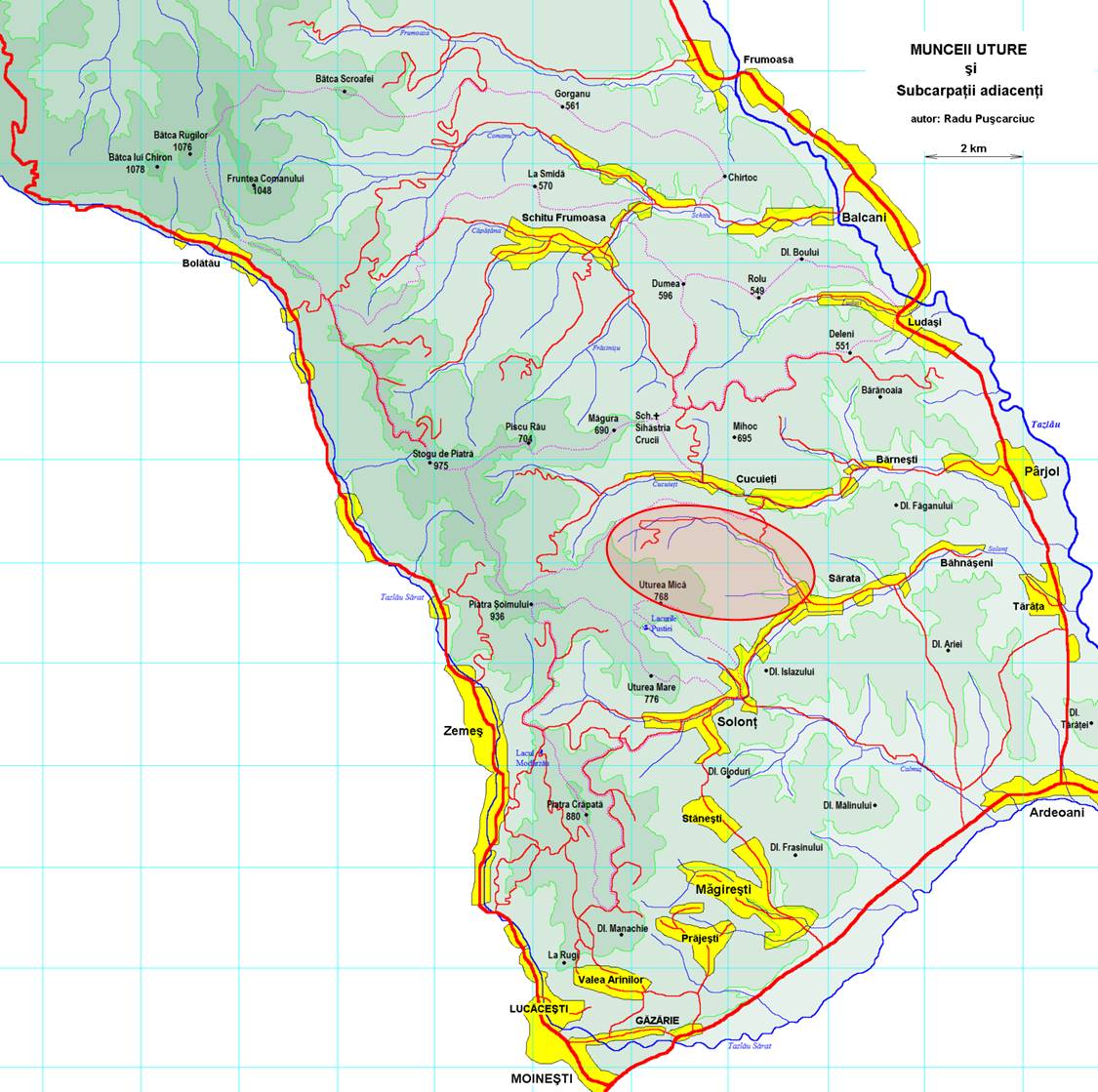 Traseu: SĂRATA – Dl. Arama – Plaiul Cucuieți – Dl. Osoiu – Dl. Slatinei – Vf. Hultoanei – Dl. Uturea Mică – Plaiul Jgheboasa – SĂRATA