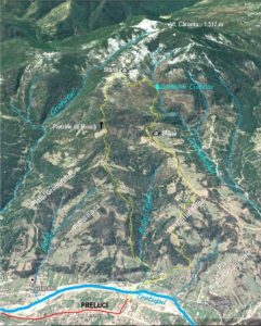Traseu: Preluci (gura P. lui Tuluc) – Plaiul lui Tuluc – La Cărunta – Valea Crăciunoaia – Bălătăul Ciutelor – Stâna Cărunta – Pietrele de Moară – Plaiul Ilinca – Gura P. lui Tuluc – Preluci
