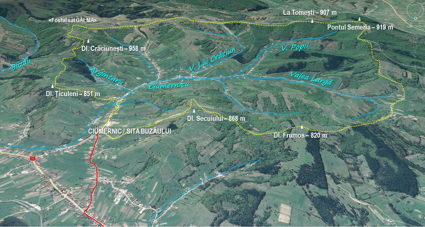 Traseu: Ciumernic – Dl. Țiculeni – Dl. Crăciunești – Pontul Semeria – Dl. Frumos – Dl. Secuiului – Ciumernic