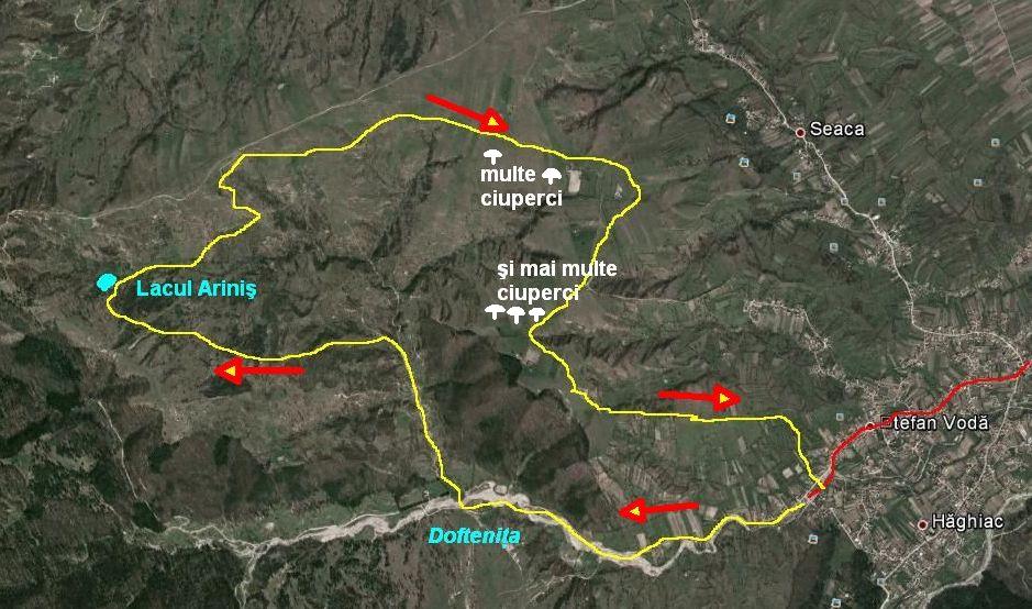 – traseu: Dofteana – valea Dofteniţei – Dl. Arsurii – Lacul Ariniş – Dl. La Pârloage – Dofteana