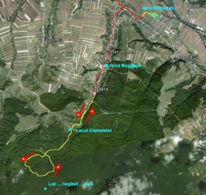 – traseu: Negoieşti – Iazul Negoieşti – Iazul Bogdana – Lacul Cişmelelor – Bogdana