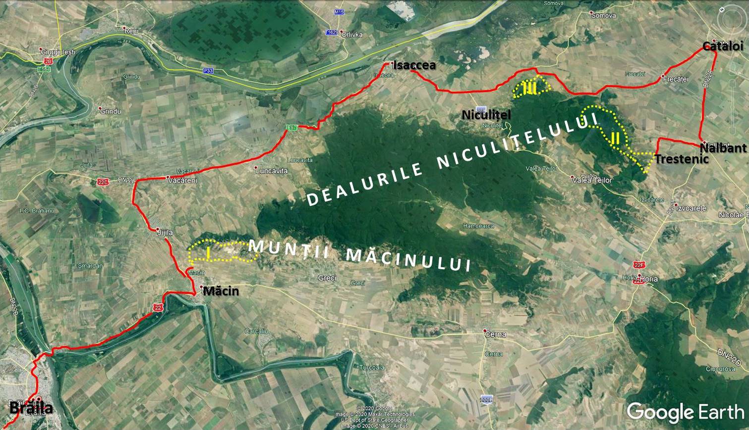 Traseu: Isaccea – Intersecția DN 22 cu DJ 2290A [auto] – Valea Viilor – Dl. Sarica – Valea Sarica – Dl. Rusului – Valea Viilor [per pedes]