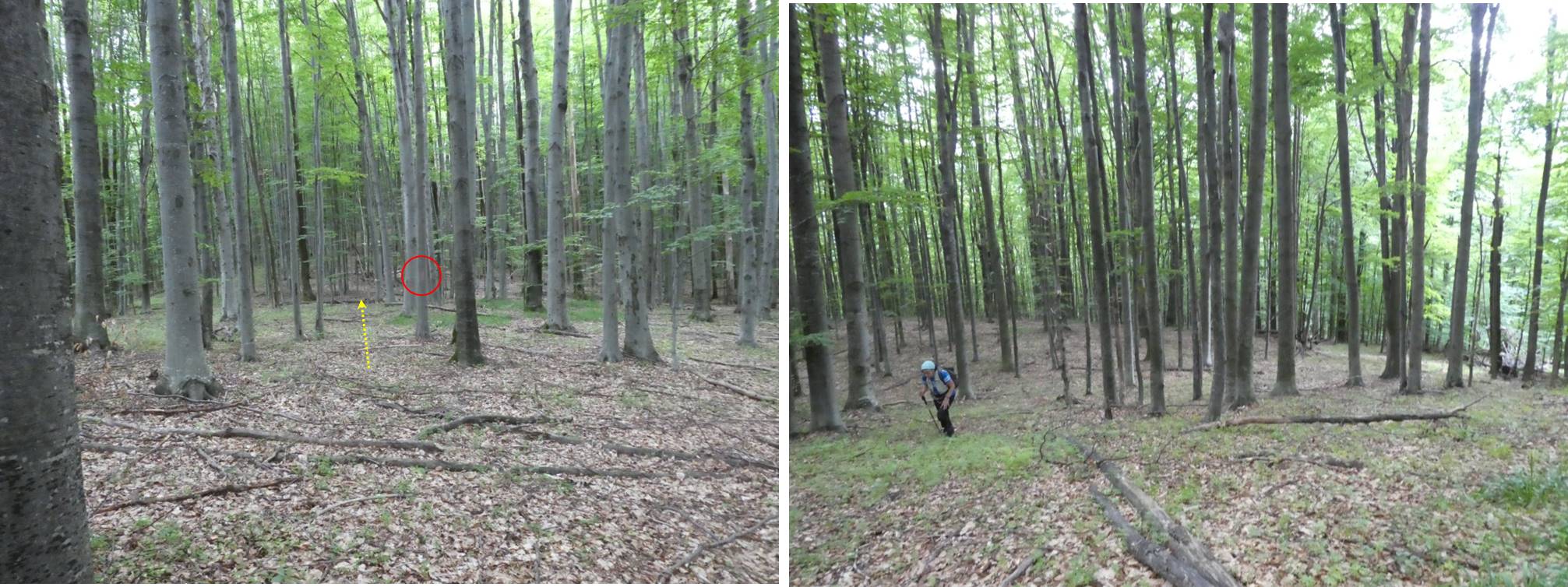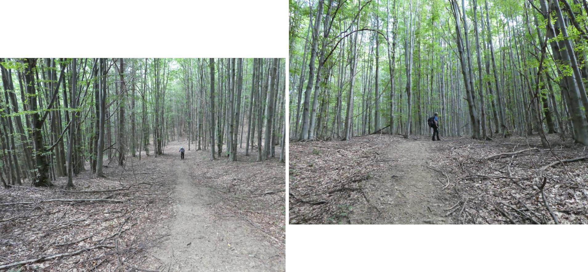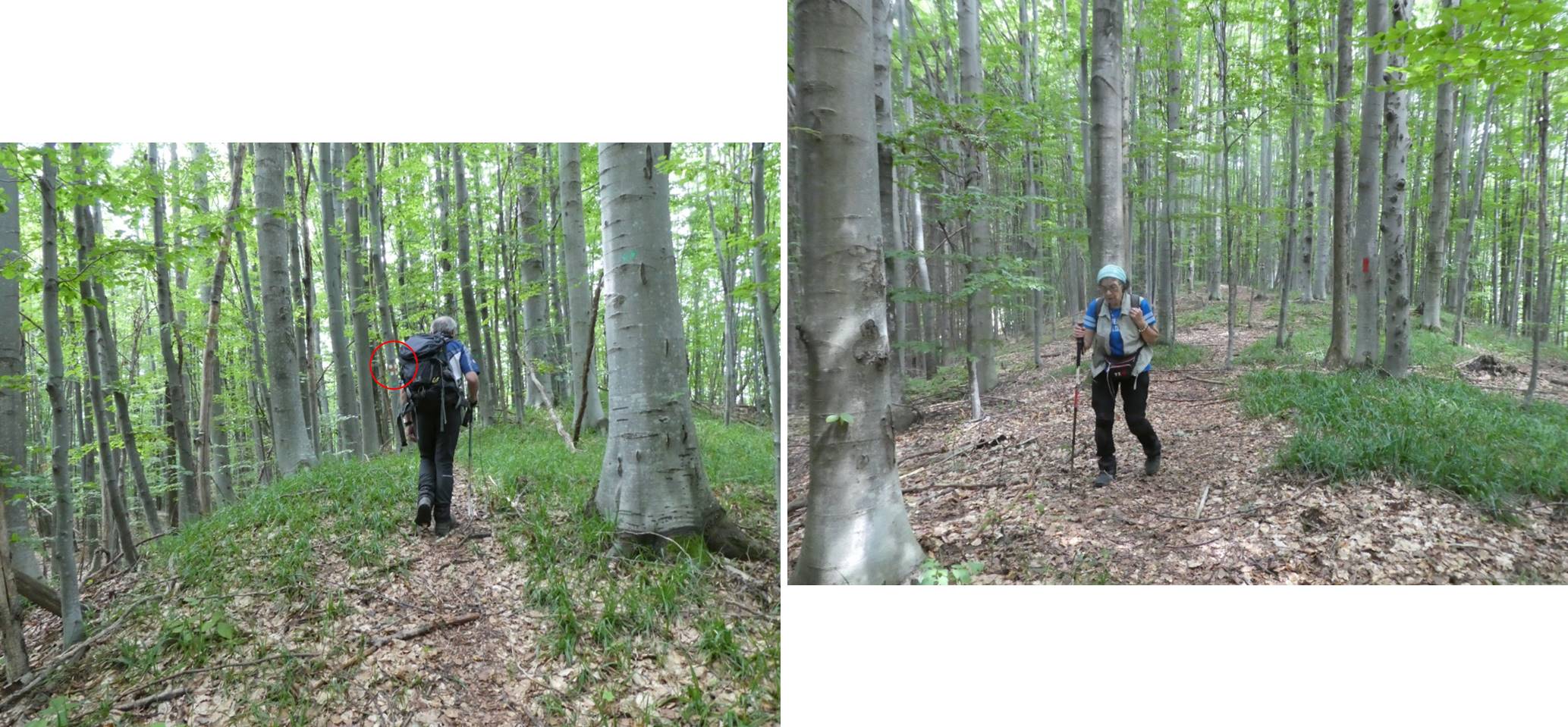 De altfel, singura noastră grijă este să ne ținem de marcaj, chiar în lipsa unei poteci, pădurea fiind rară și curată, iar panta pe care o urcăm moderată !