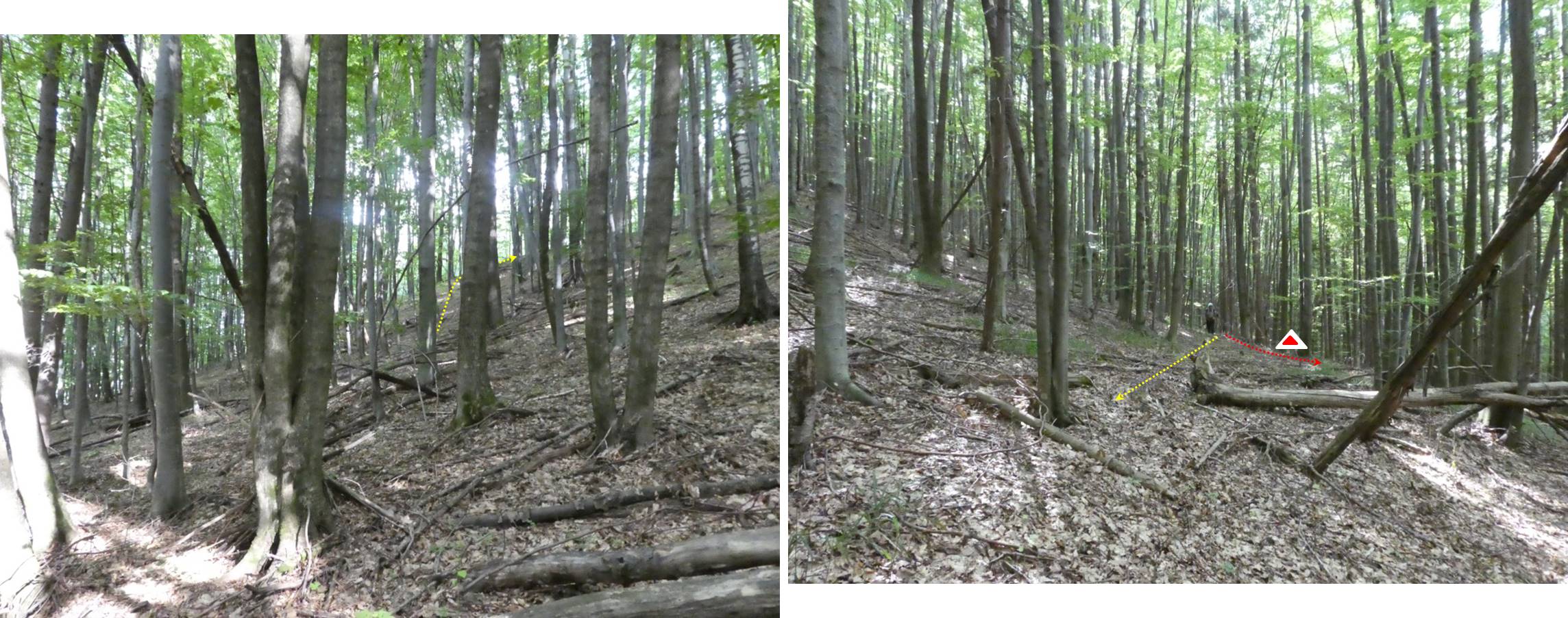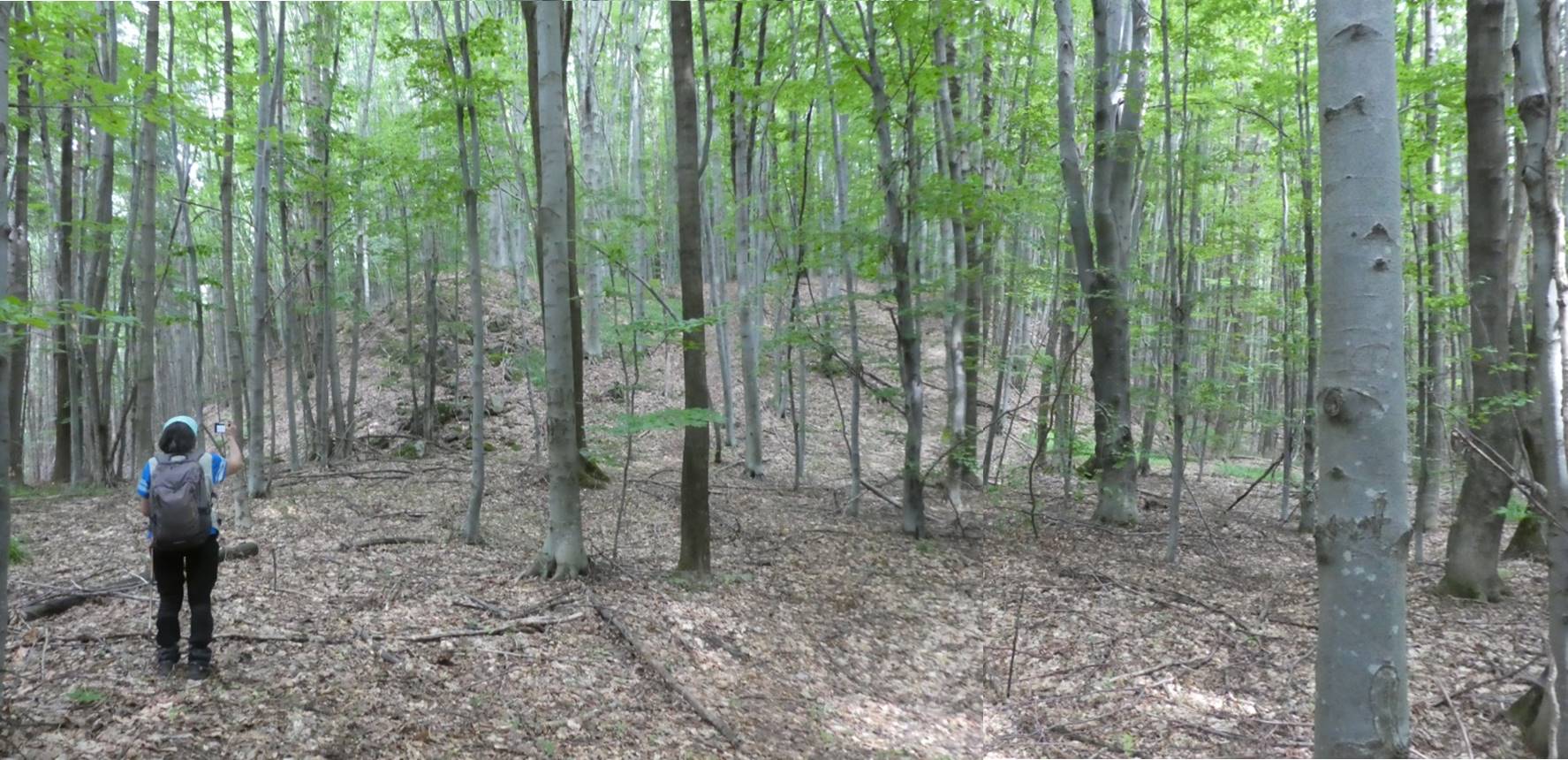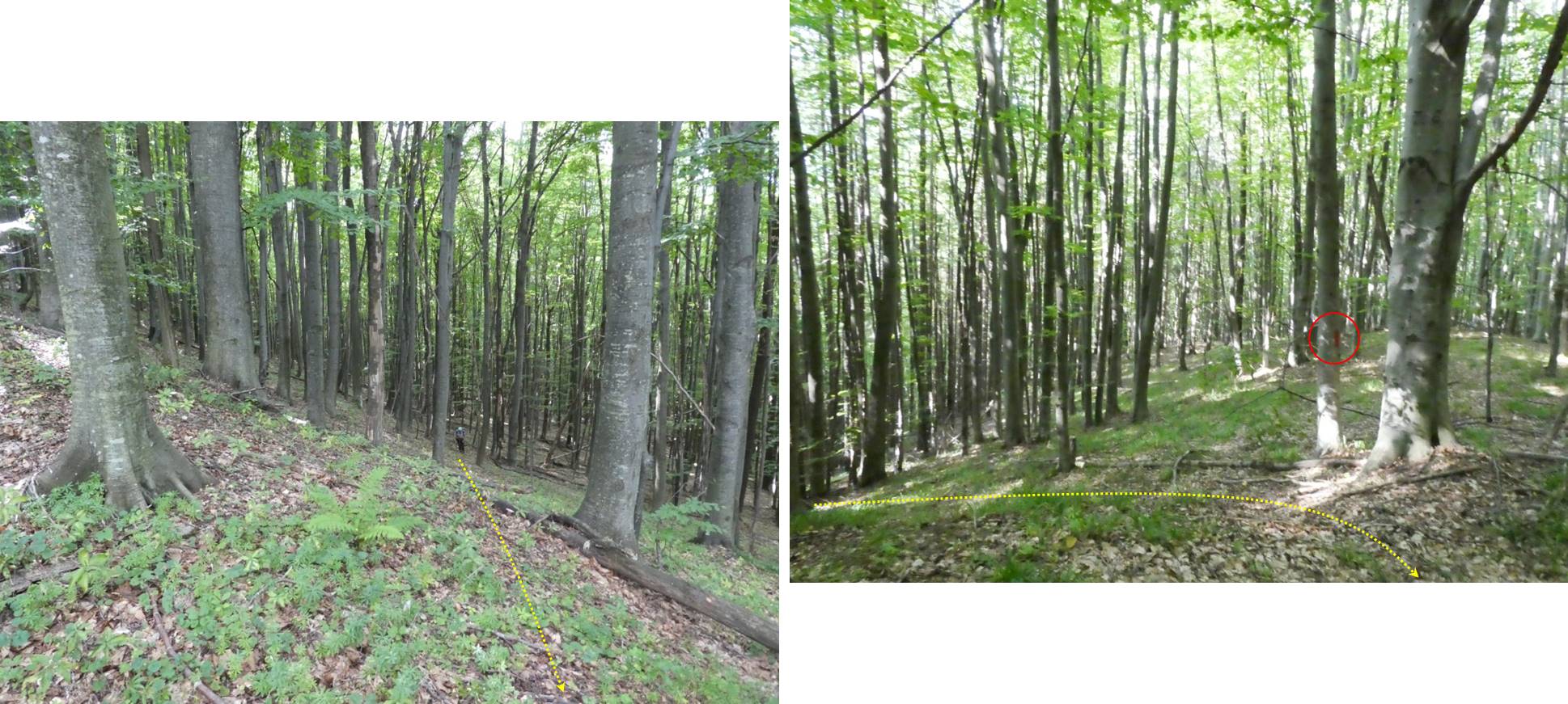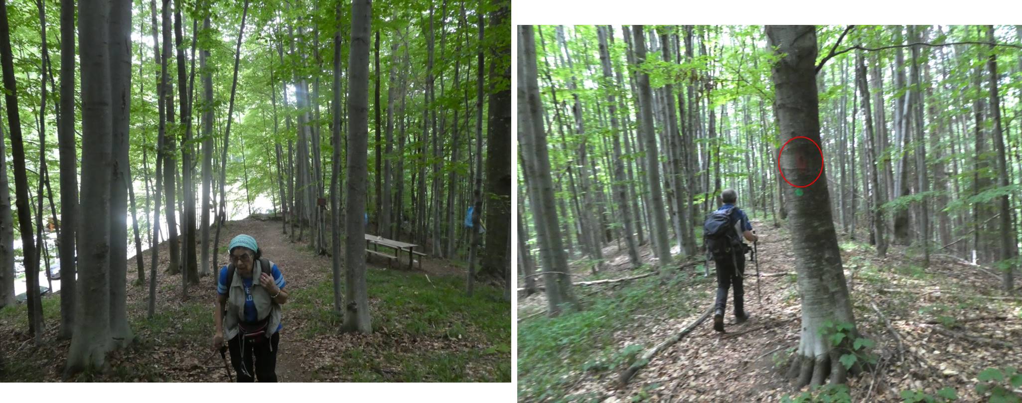 De altfel, singura noastră grijă este să ne ținem de marcaj, chiar în lipsa unei poteci, pădurea fiind rară și curată, iar panta pe care o urcăm moderată !