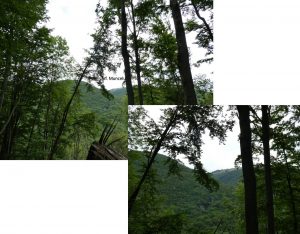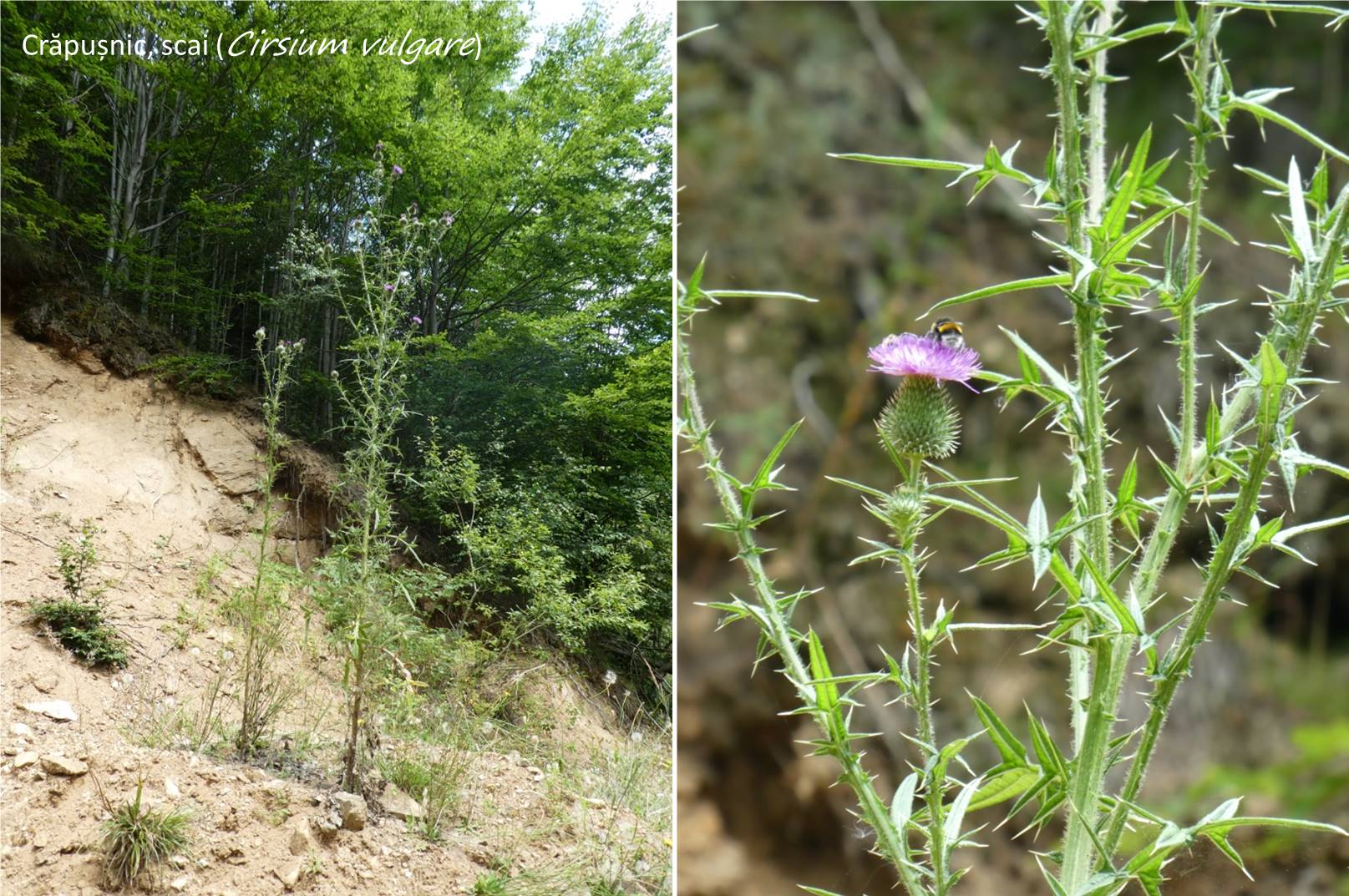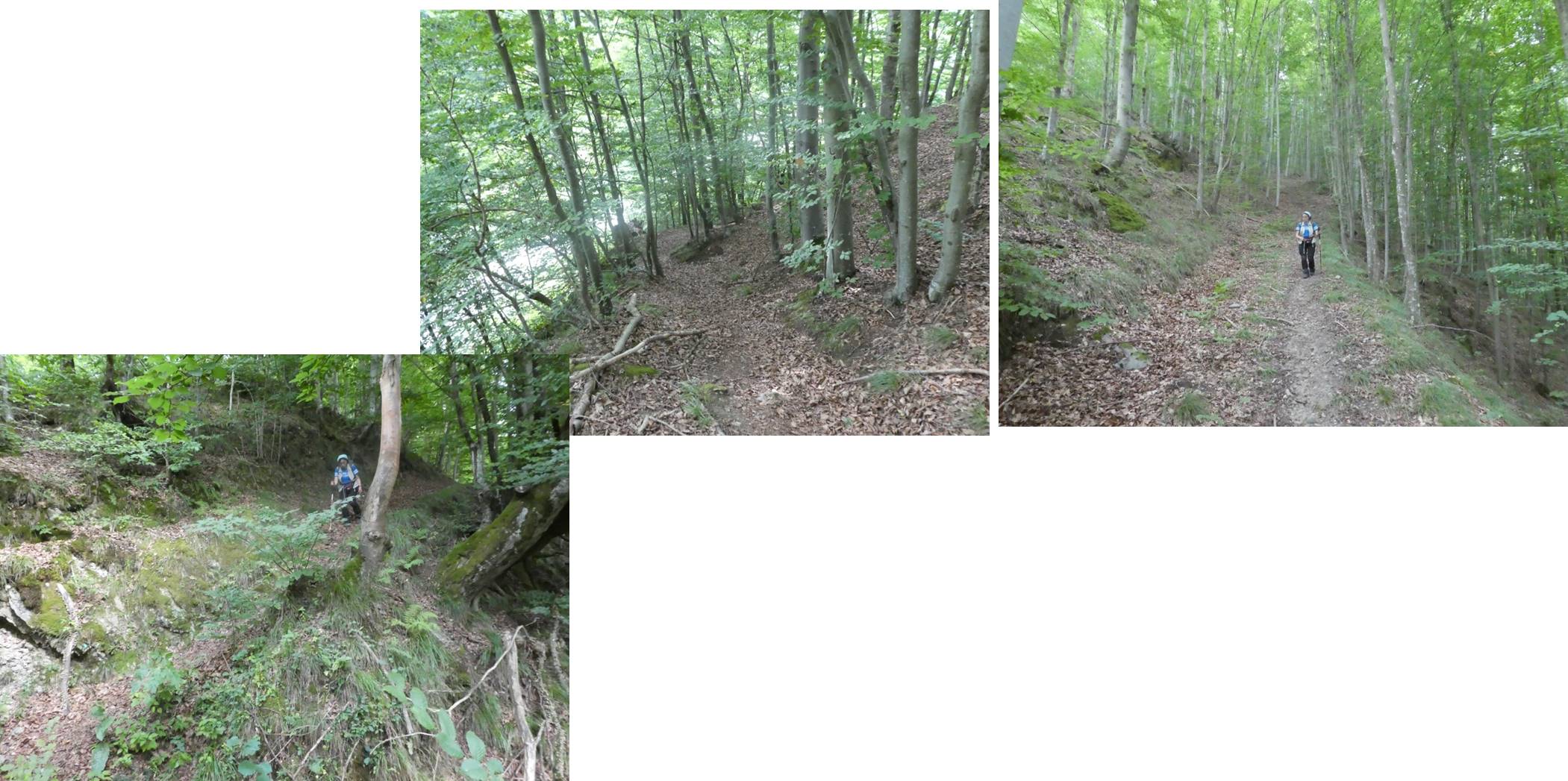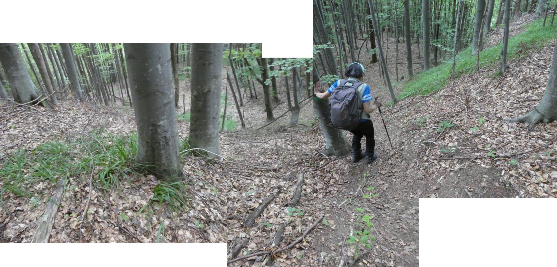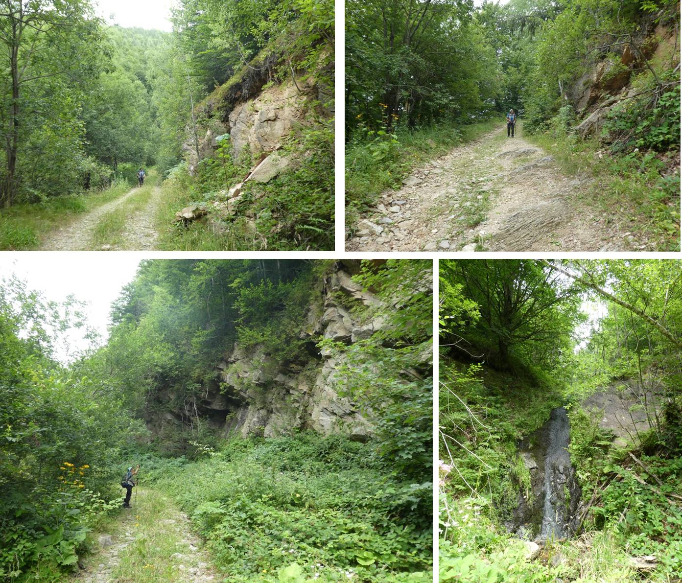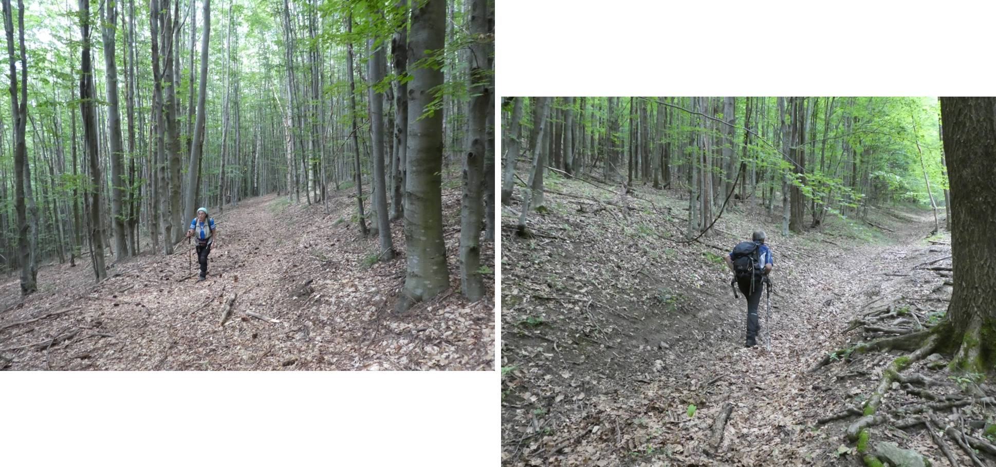 În ultima sa parte poteca – vechi drum forestier – mai cade de pe culme, ba în dreapta ei, …