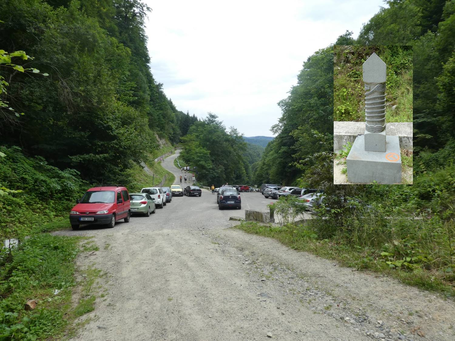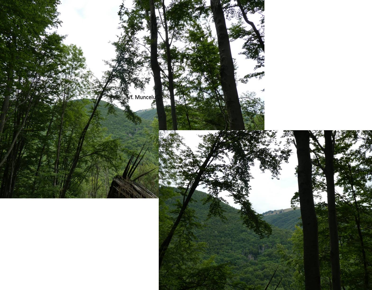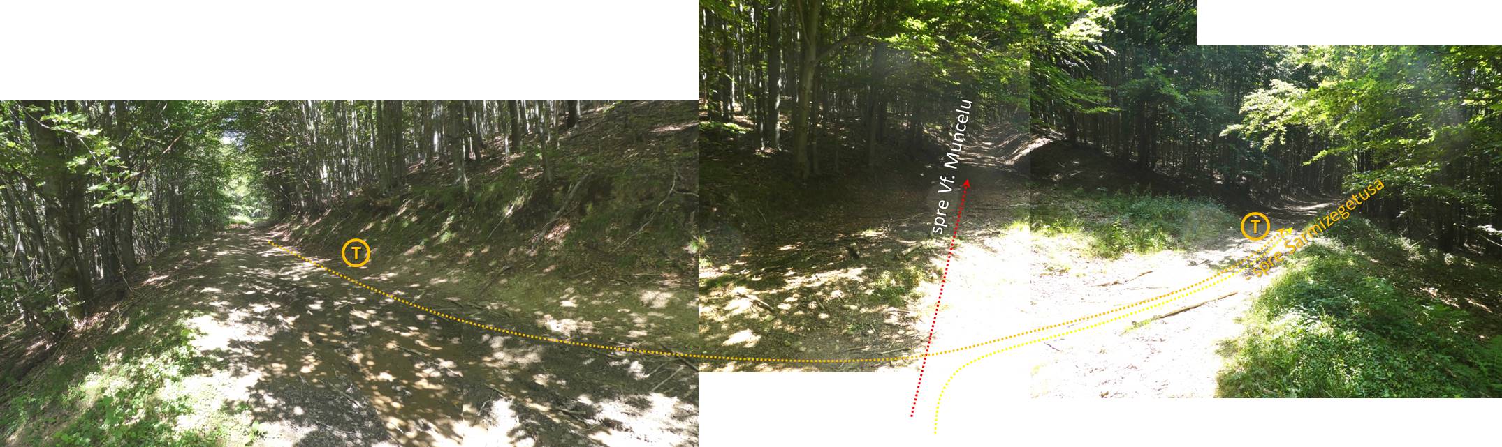 … pe marginea unui drum forestier de coastă, transversal pe direcția celui pe care venim, care, fără a-și schimba direcția, suie spre Vârful Muncelu.