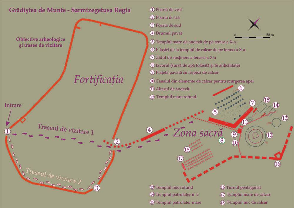 Planul Cetății Sarmizegetusa, conform www.sarmizegetusa.ro, …