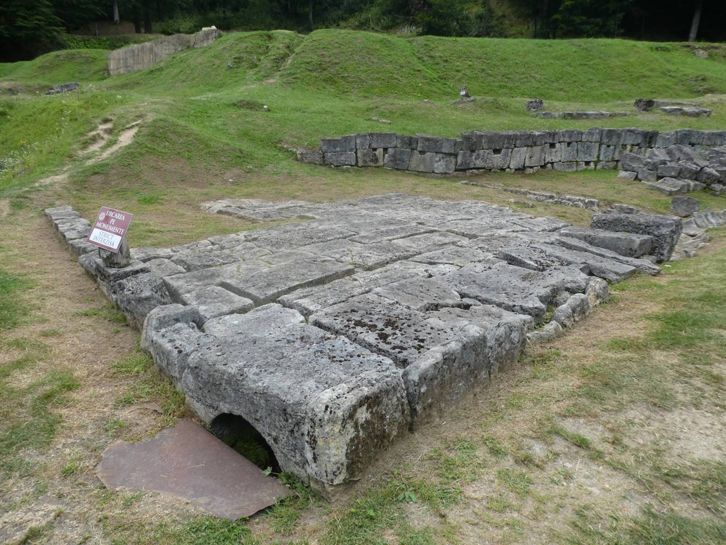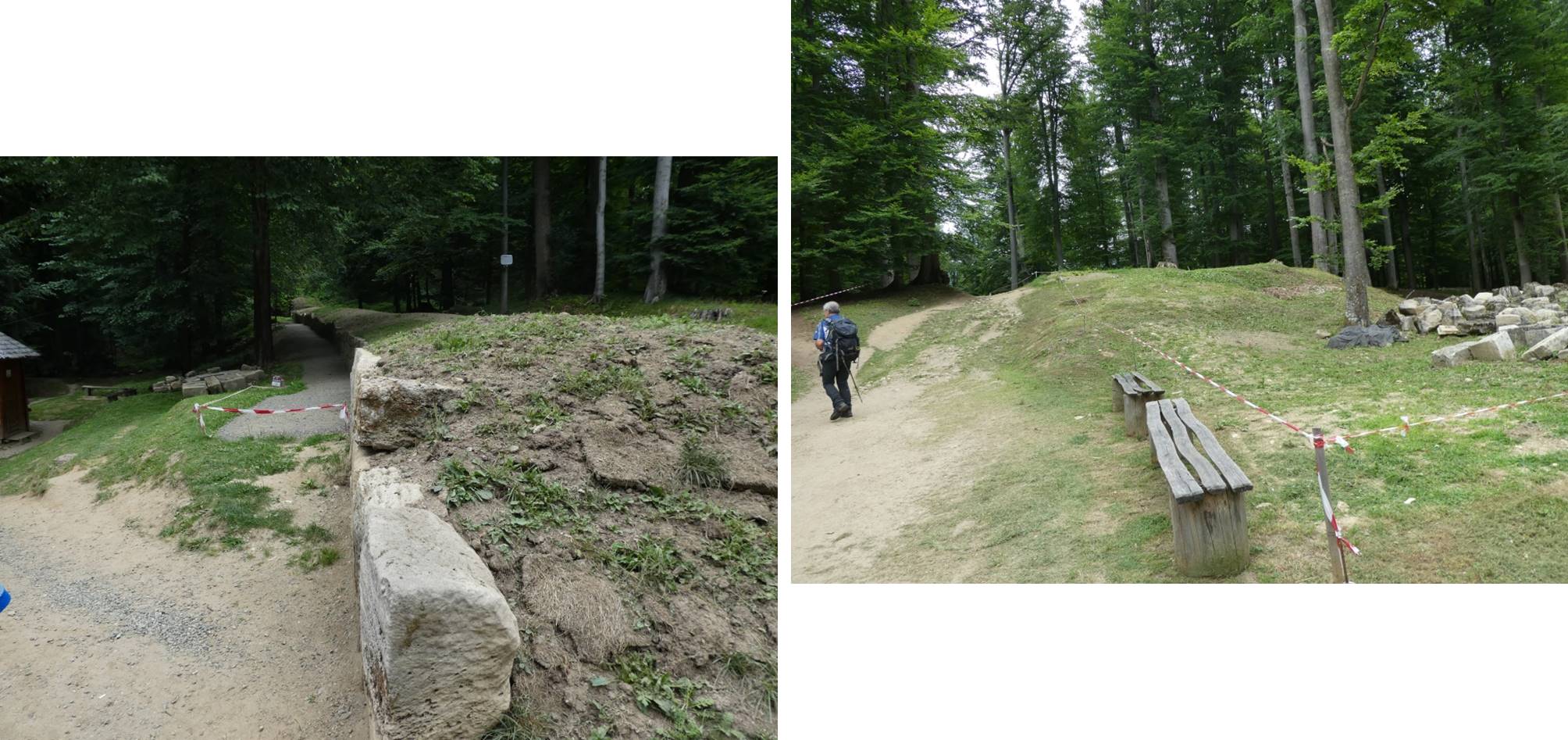 Câteva blocuri de calcar, clar prelucrate antropic, sugerează faptul că suntem în zona așezării civile de vest a Sarmizegetusei; …