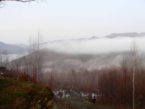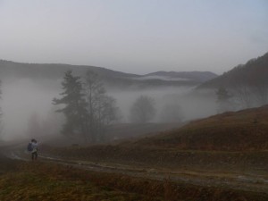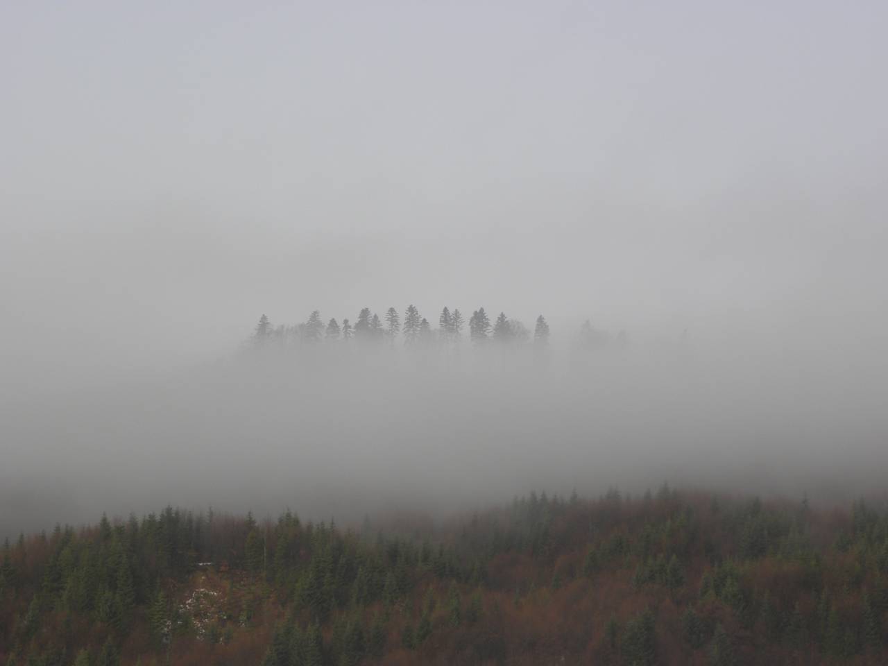 … odată cu ceaţa; cu … nasul pe sus, vârfurile Păltinişului !