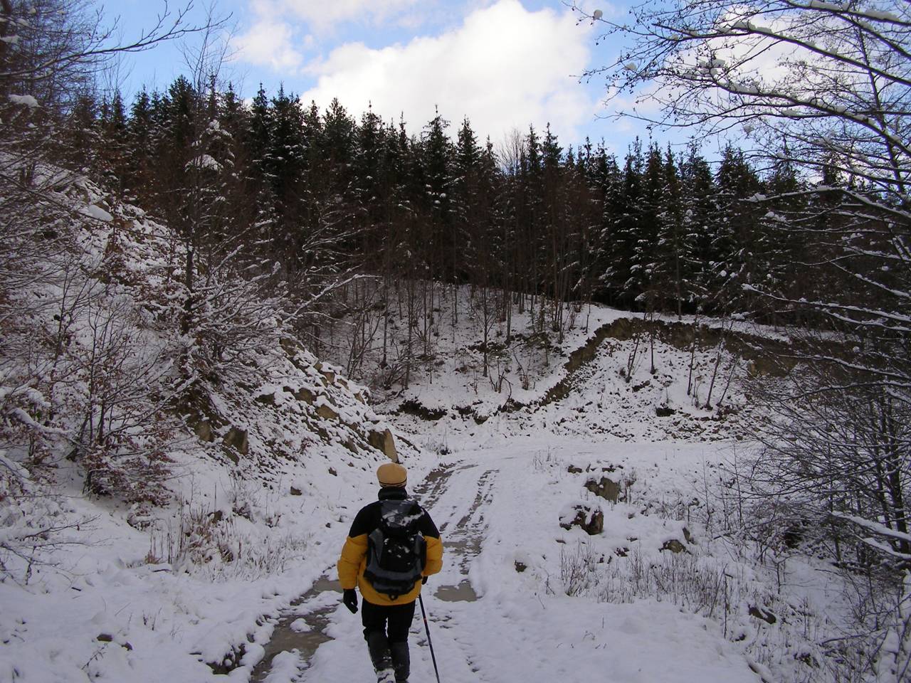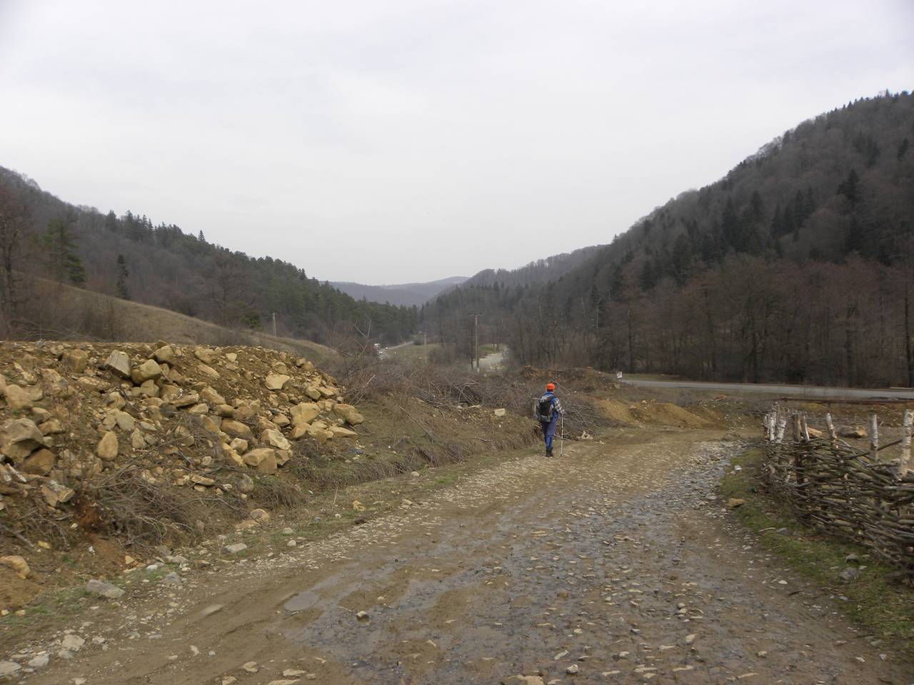 – coborâm, un timp, pe Piciorul Puşcaşului, interfluviu între pârâul omonim şi Şaroşa;