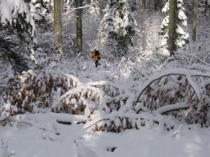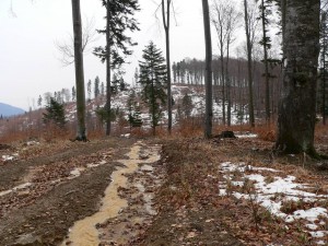 Timp de o oră (incluzând şi o buclă inutilă, cauzată de o … buche silvică … mâncată) ne … hrentuim picioarele printr-o pădurice proaspăt rărită !