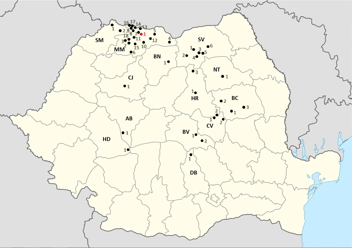 Bénes Marta, care consemnează aceste locații (op. cit.), le completează cu cele descoperite de ea însăși în Maramureș: