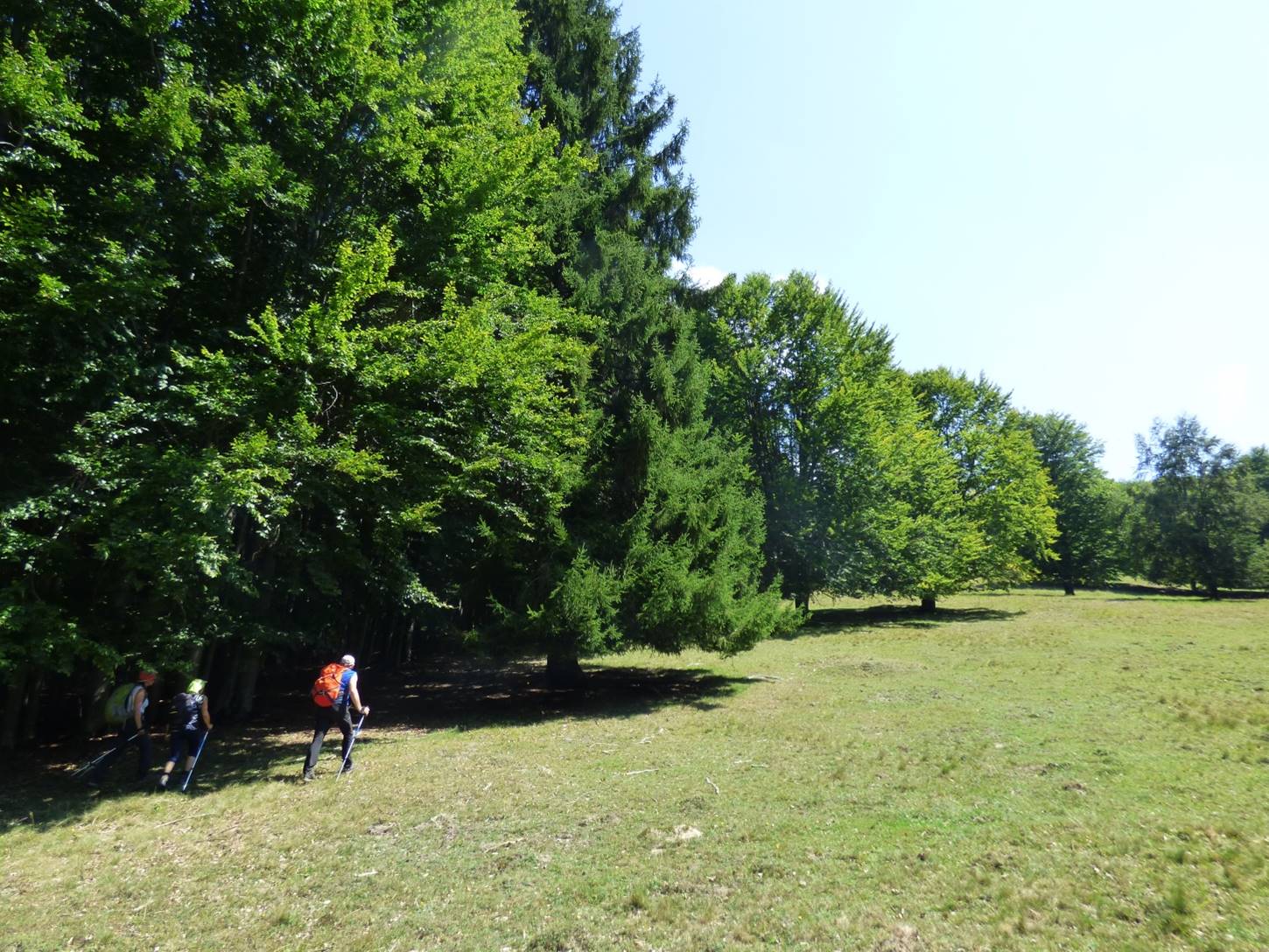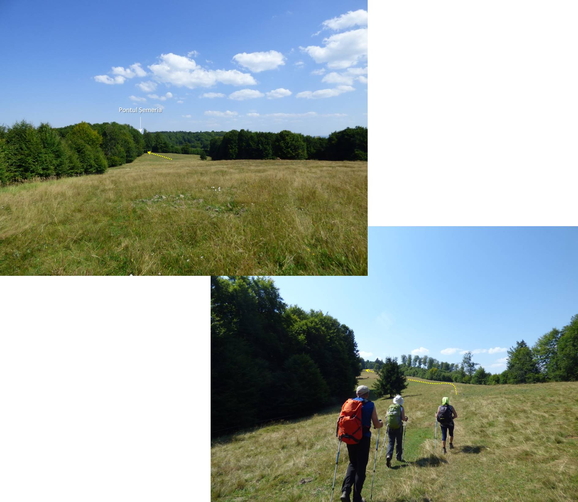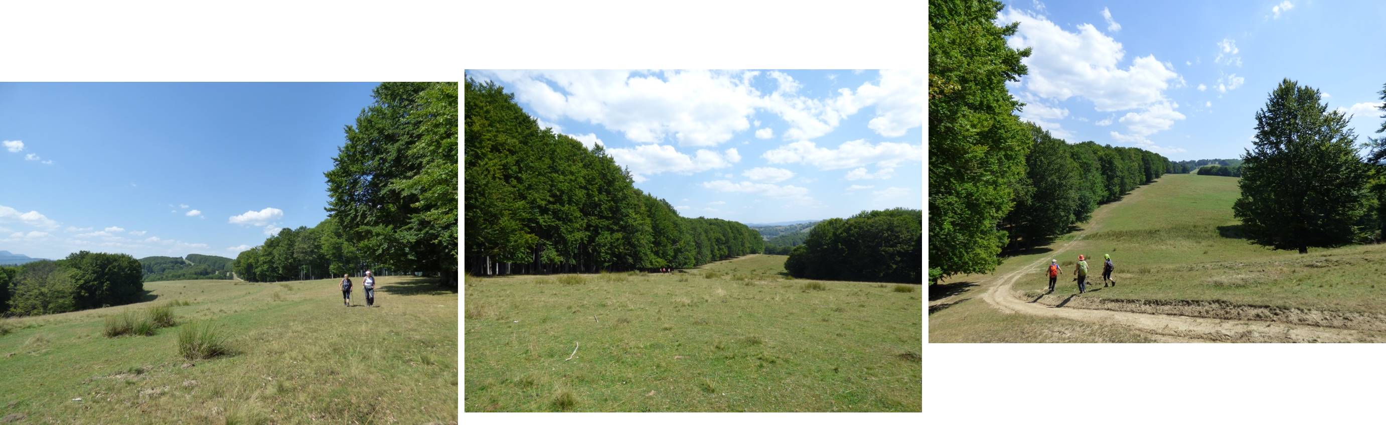 După o mare poiană, pe care o traversăm de la un cap la altul urcând, …
