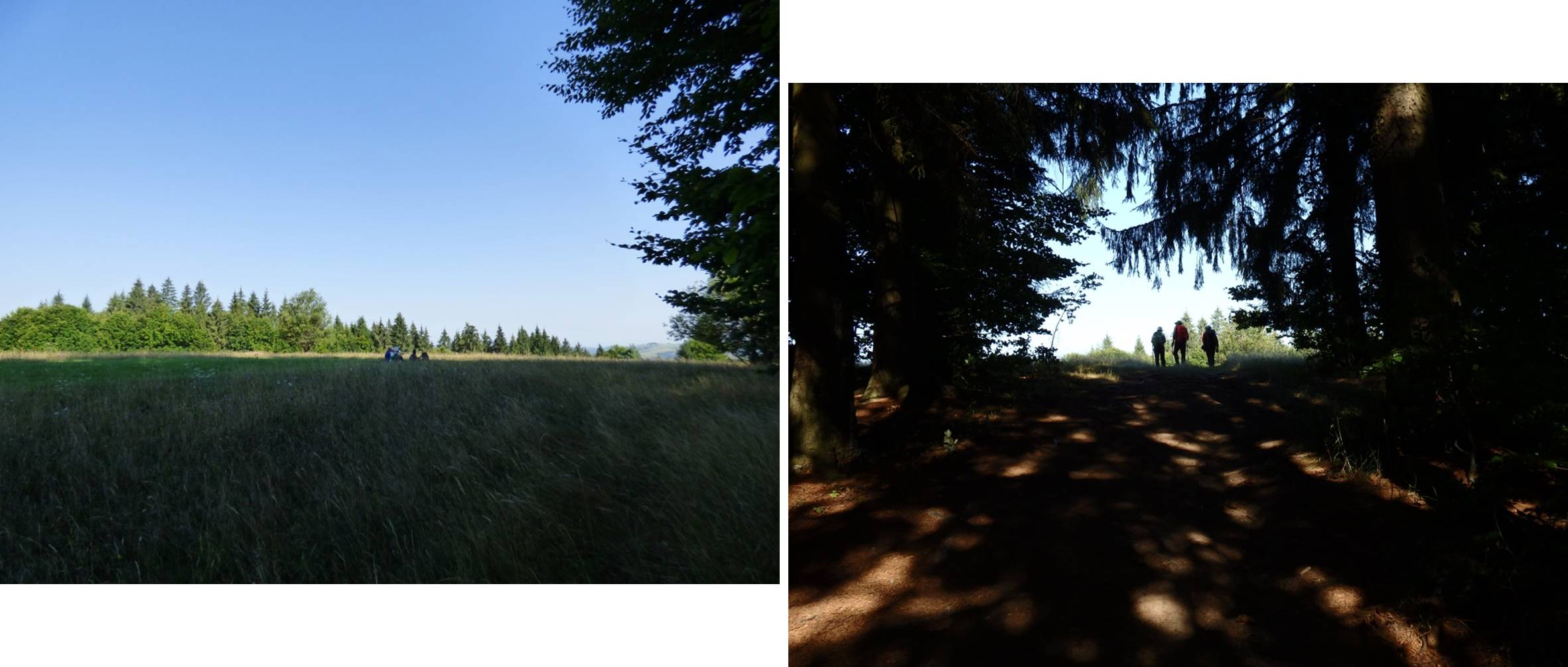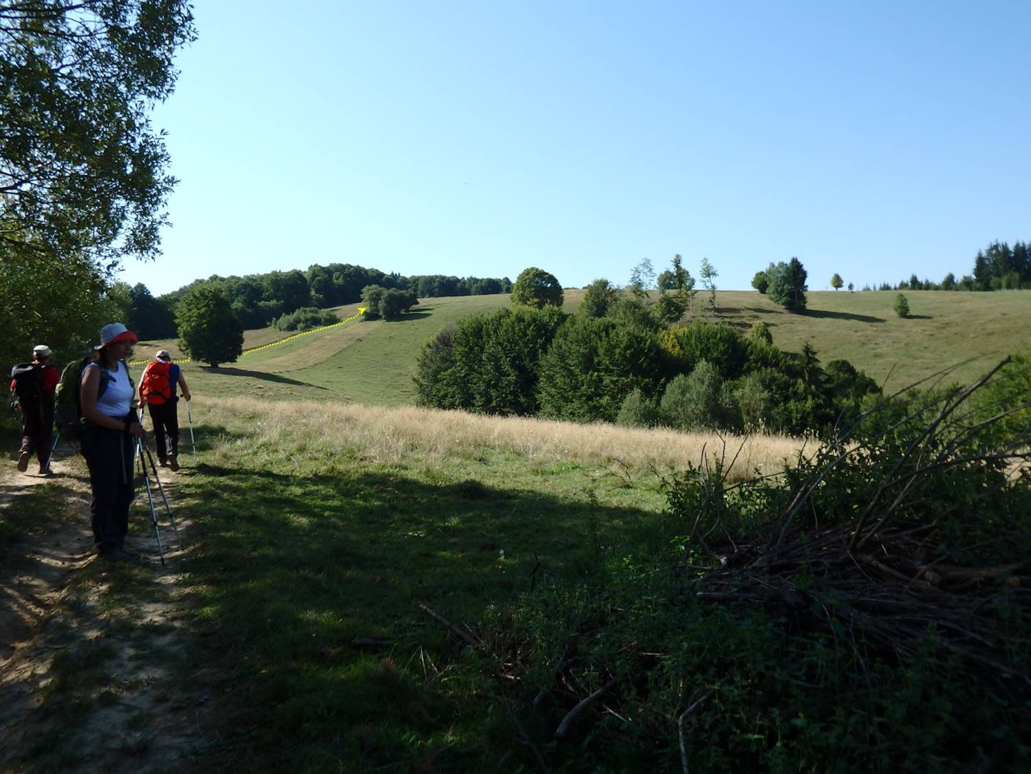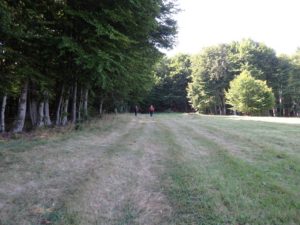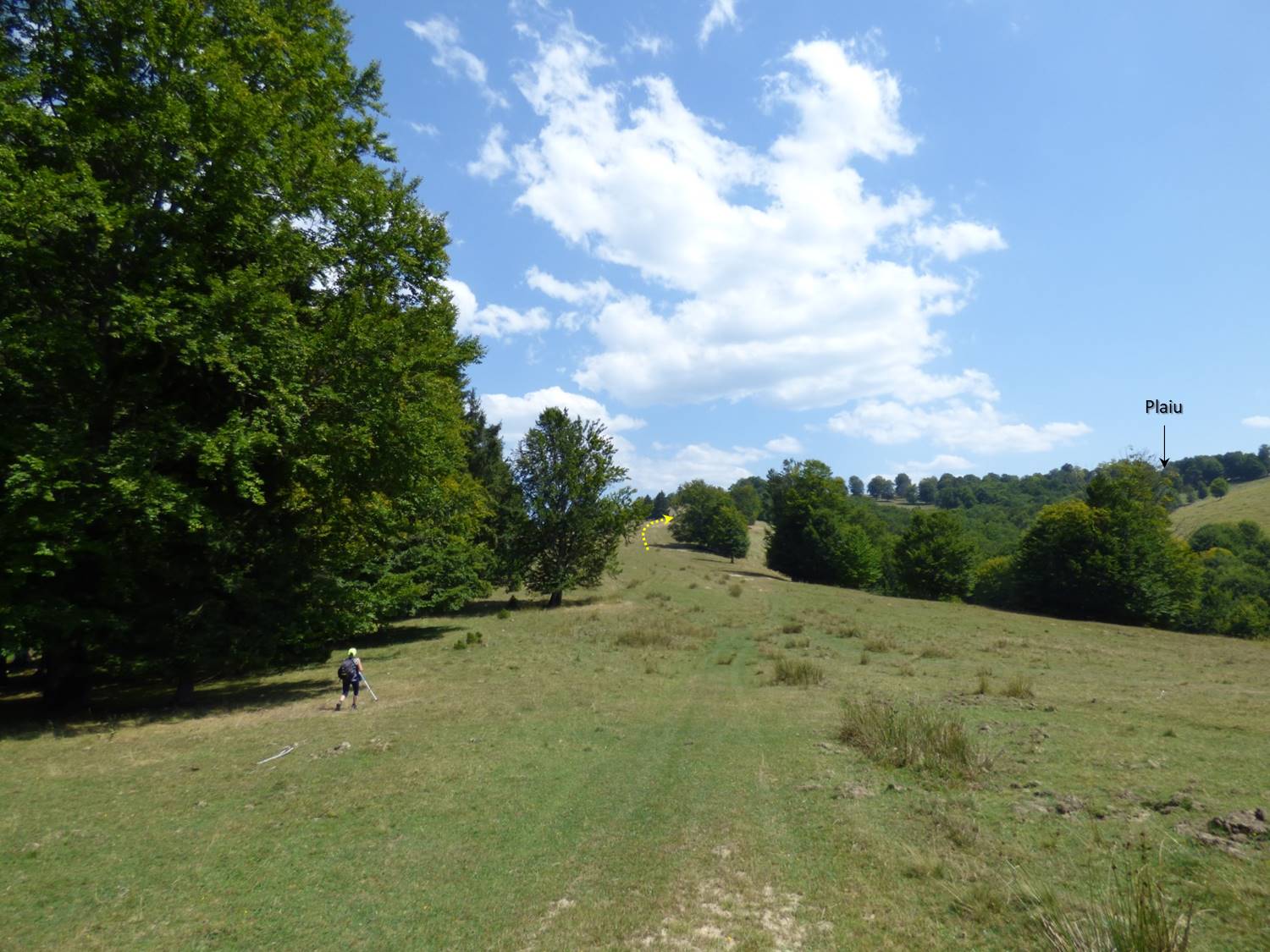 După o mare poiană, pe care o traversăm de la un cap la altul urcând, …