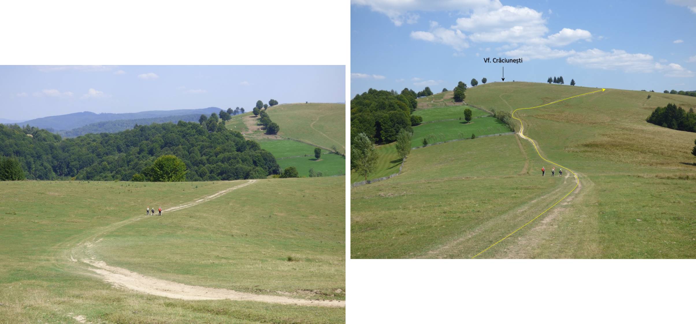 De La Tomești până sub Vârful Crăciunești sunt 4 km de plai, ondulat și asimetric: