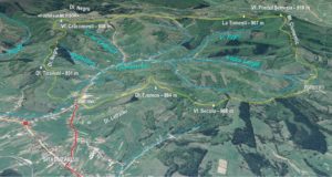 … urmează imediat a doua schimbare bruscă de direcție: coborâm relativ … vertiginos (urmând “H”-urile roșii) de pe Pontul Șemeria spre est !