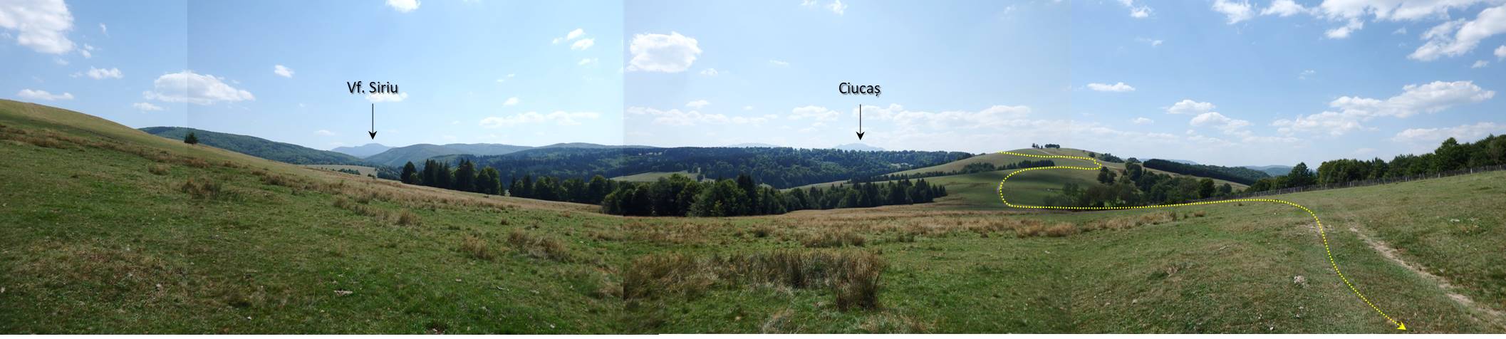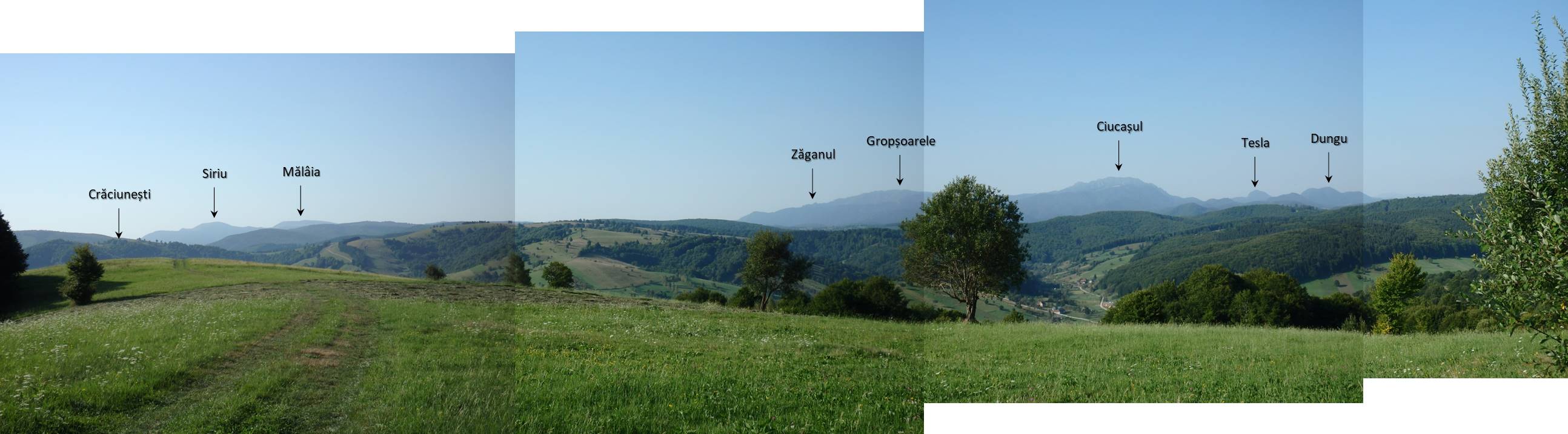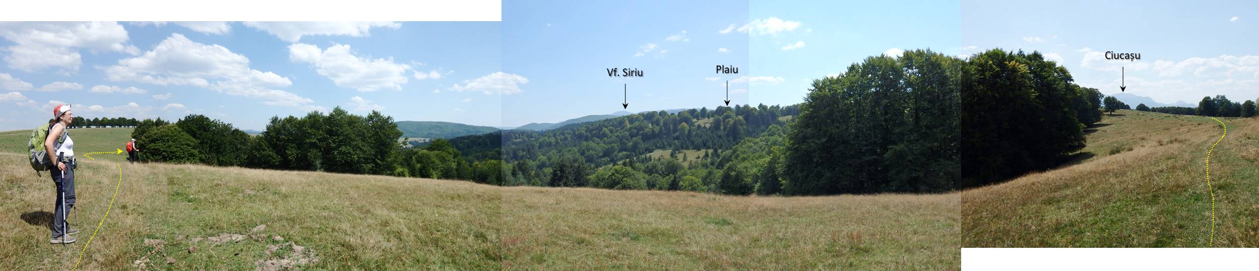 … urmează nodul orografic din care se desprinde spre sud Plaiul, șira spinării Munților Siriu, interfluviul dintre văile Buzăului și Buzăielului.