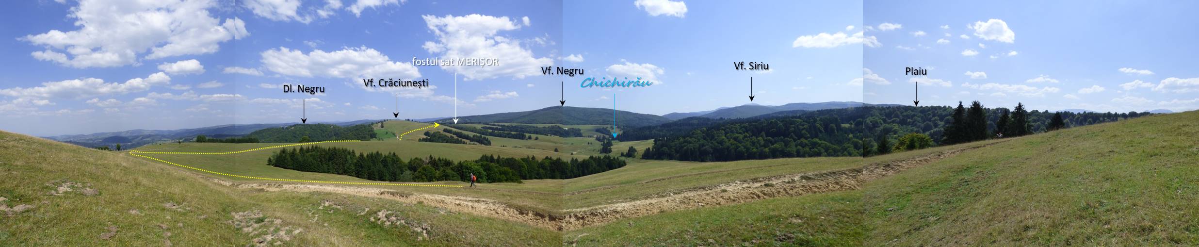 … vizităm fostul sat Merișor ! A devenit … istorie pe la sfârșitul anilor 1980, dar are și … preistorie, aici fiind dezvelite de arheologi urmele unor locuiri paleolitice.