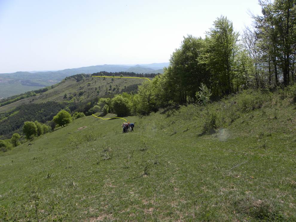 Poteca de pe, încă, interfluviul Brădetu-Gresia ține o curbă de nivel mai joasă decât cea maximă a culmii, …