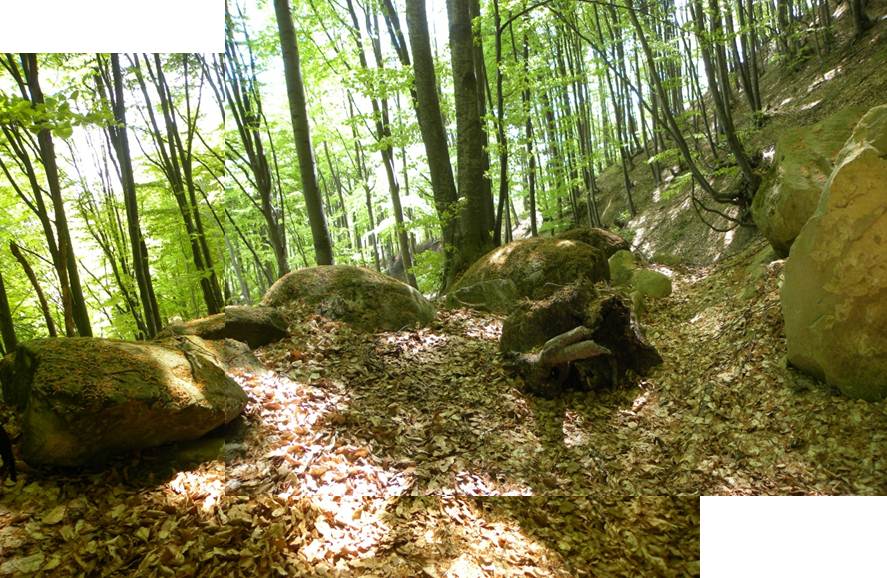Poteca scurtcircuitează sinuozitățile culmii (cei câțiva trovanți de pe ea ar fi trebuit să ne convingă să-i fim mai … fideli) !