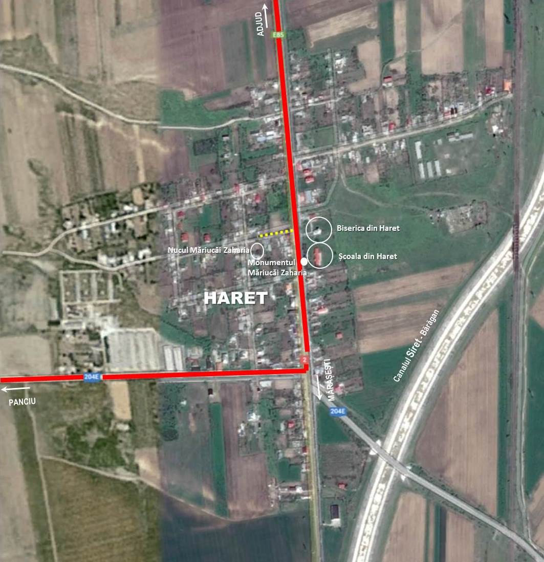 – din Adjud la Haret/ sunt 21 km pe DN 2/E 85 (stare excelentă)