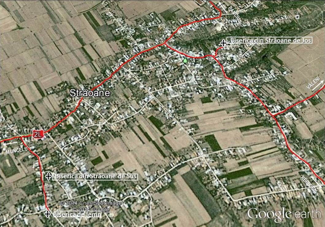 Facem cale întoarsă în Străoane de Jos, de unde, pe DN 2L, trecem în Străoane de Sus. După 1 km de la ieșirea de pe Ulița Mare, două indicatoare rutiere ne îndrumă să o luăm pe o uliță spre stânga, către bisericile Sf. Nicolae !
