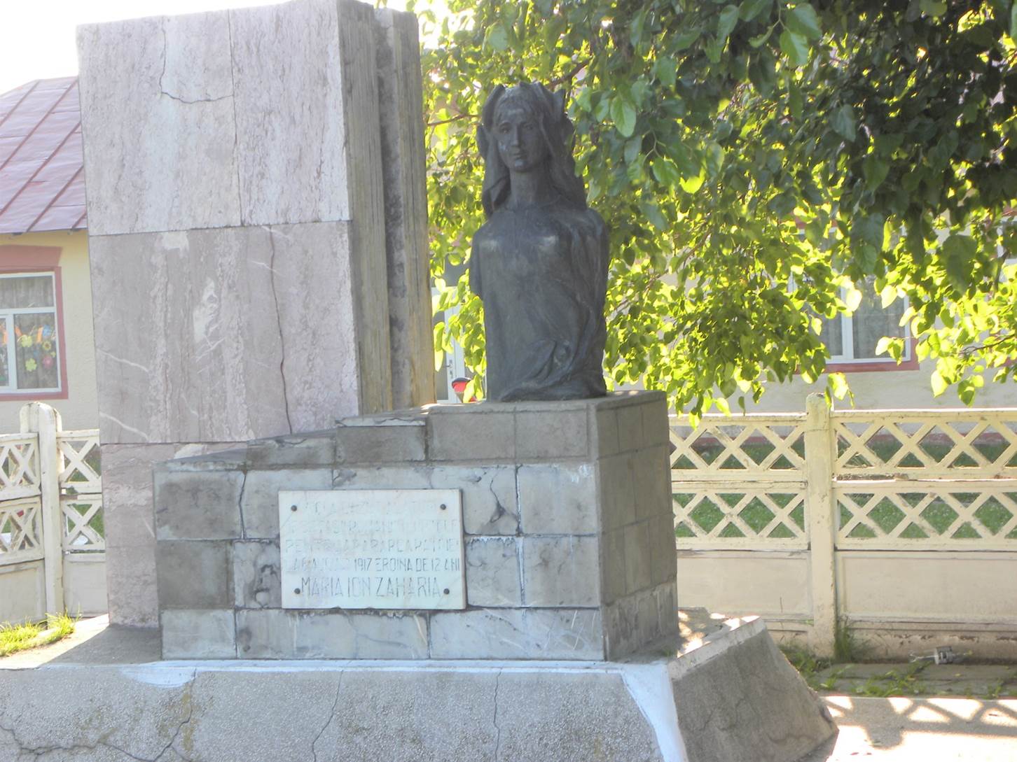 În fața școlii (care, încă, nu poartă numele eroinei; explicabil, odată ce, în manualele școlare nu mai este prezentă istorisirea lui Dumitru Almaș despre aceasta) a fost dezvelit în anul 1977 un monument închinat Măriucăi Zaharia.