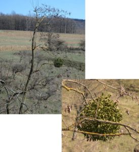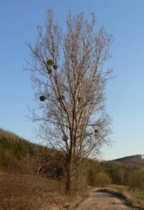 În imagine, un ulm (Ulmus minor) năpădit de vâsc (Viscum album) !