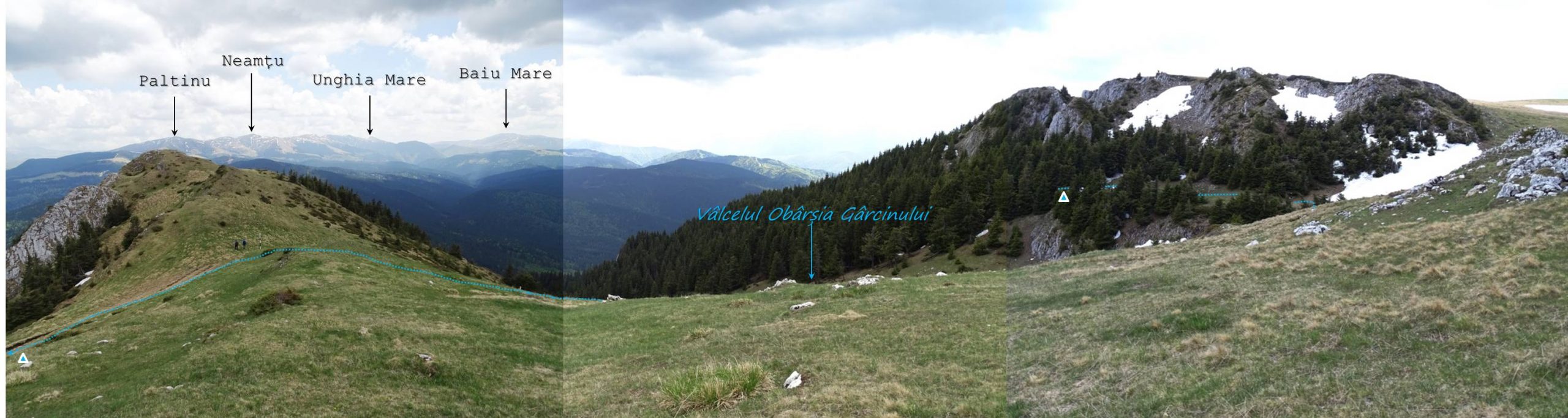 Chiar coborâm puțin pe versantul stâng al vâlcelului Obârșia Gârcinului atrași de un vârf …