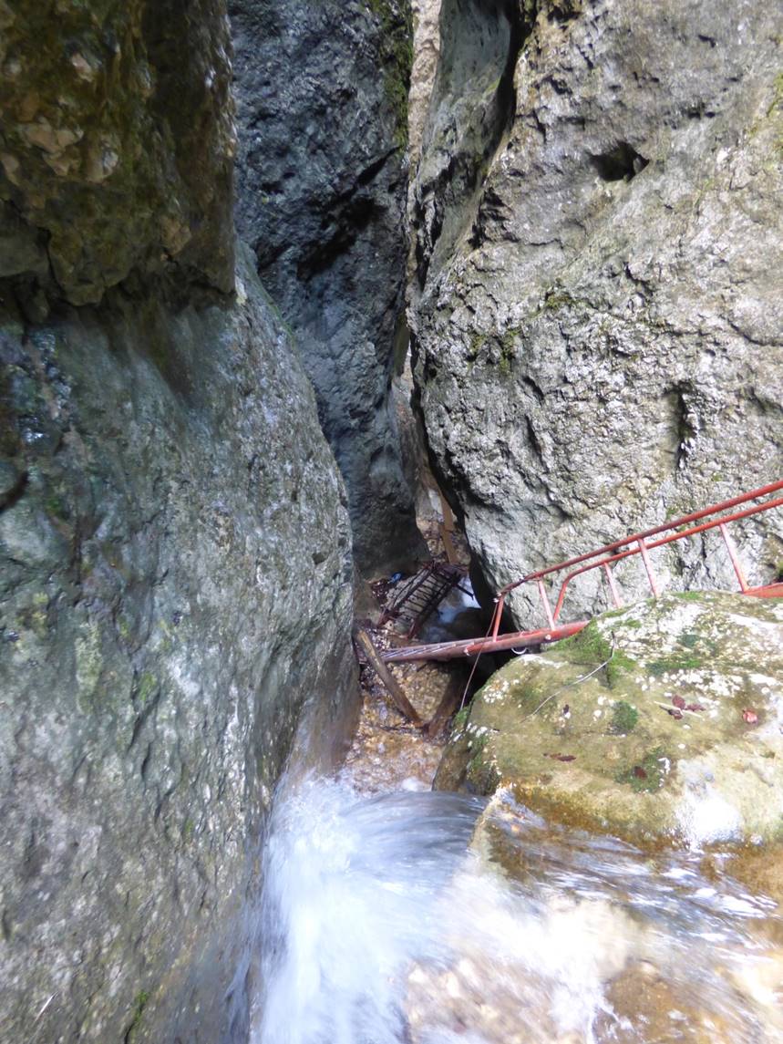 Cărarea ce coboară din poieniță în valea pârâului se bifurcă imediat, putând alege în a intra în canionul Tamina pe sus sau pe jos !